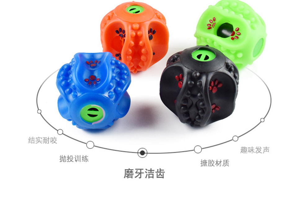 产品名称:新款宠物玩具漏食球 曲面球形发声怪叫漏食球 彩色狗狗磨牙狗玩具