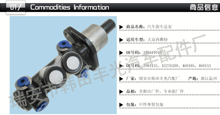 La venta directa del fabricante se aplica al cilindro maestro de freno de Volkswagen Seat 191611019