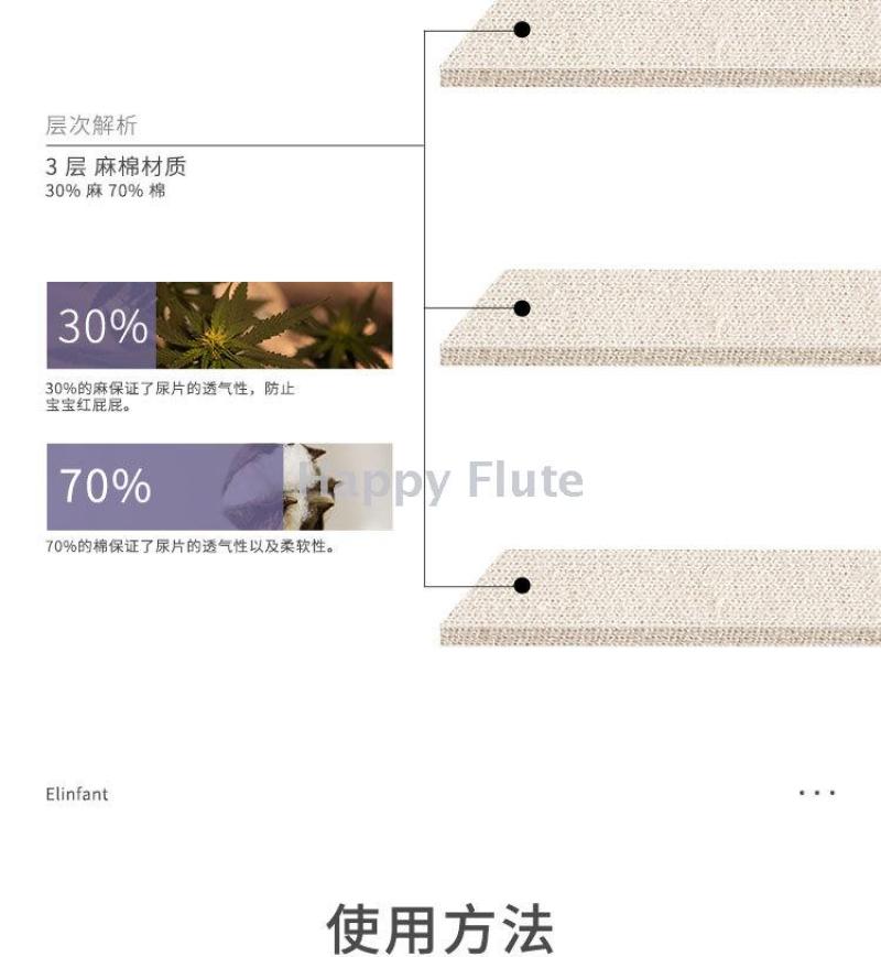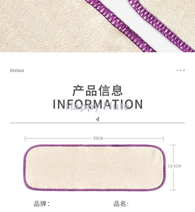 【品牌】:Elinfant 【等级】:一等品 【颜色】:天然米白色 【规格】:35cm×13.5cm 【面料】:3层麻棉 【产品简介】: 1.环保尿布吸水性超好,宝宝尿后能迅速穿过表层被中间层吸收,表层仍然保持干爽,只有一种微湿感,宝宝更舒服,干爽性可保持2到3次尿。 2.有效防止宝宝红屁股。 3.尿垫做工细致,锁边精细紧密,经过多次洗涤不变形,大大提高尿布的使用期限。 4.面料无刺激 配套:可搭配尿裤使用 尺寸:常规35*13.5cm(可定制)