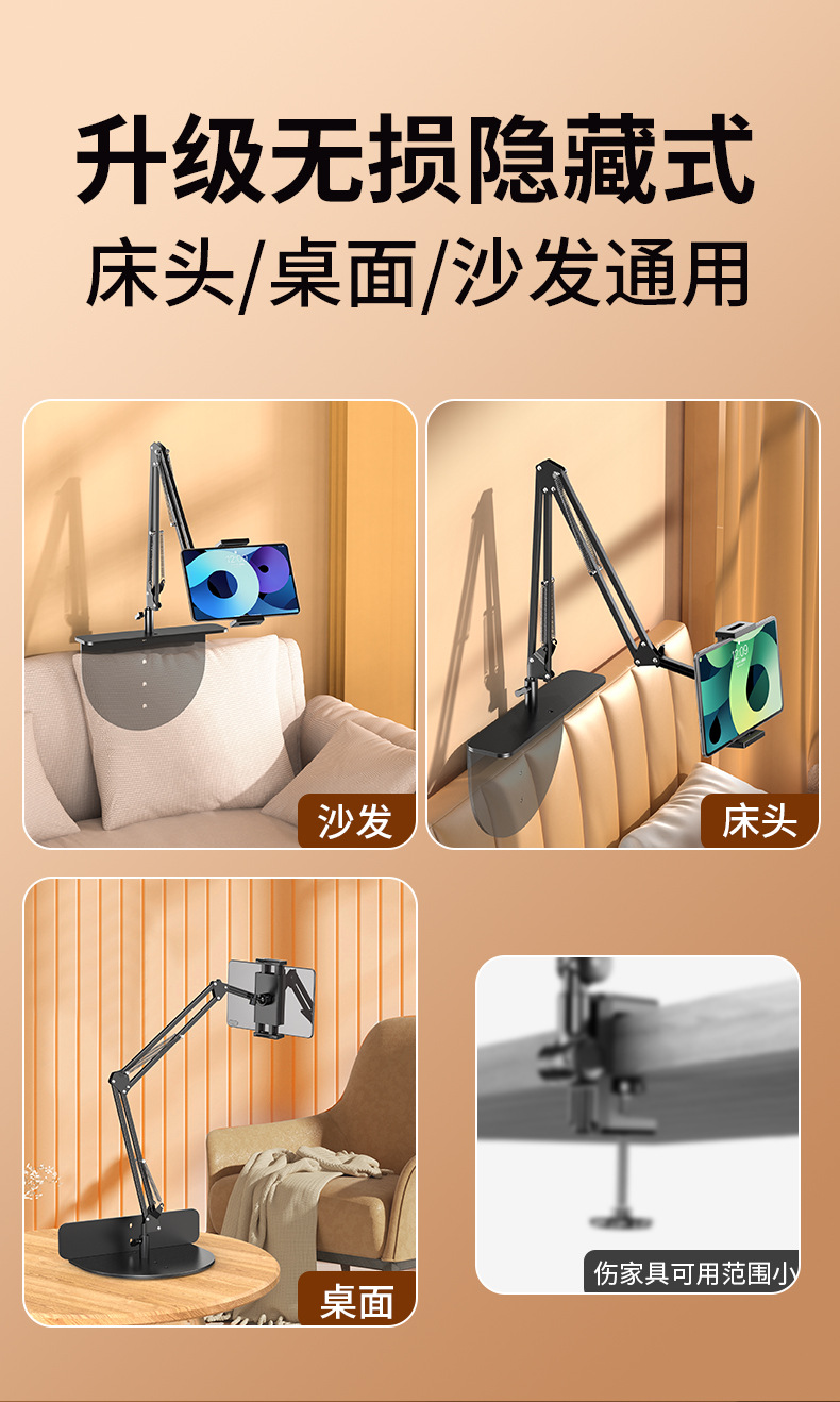 Soporte de cabecera de cama de teléfono móvil soporte de tableta para perezosos al por mayor adecuado para soporte de teléfono móvil en voladizo de escritorio en cama iPad