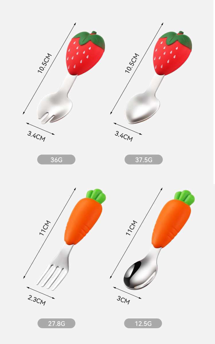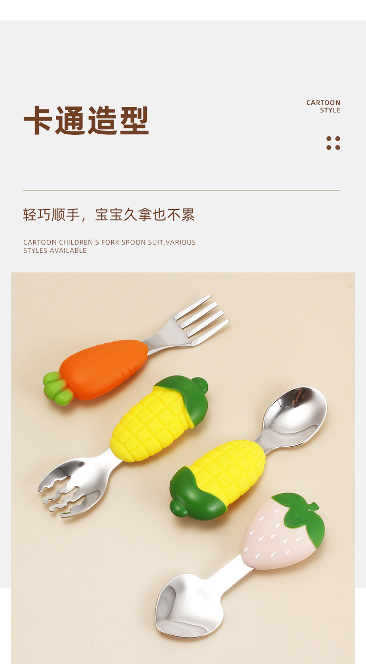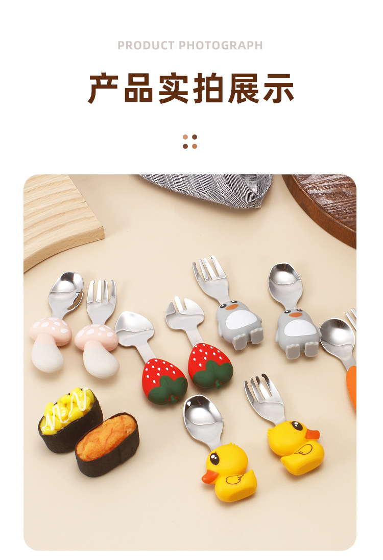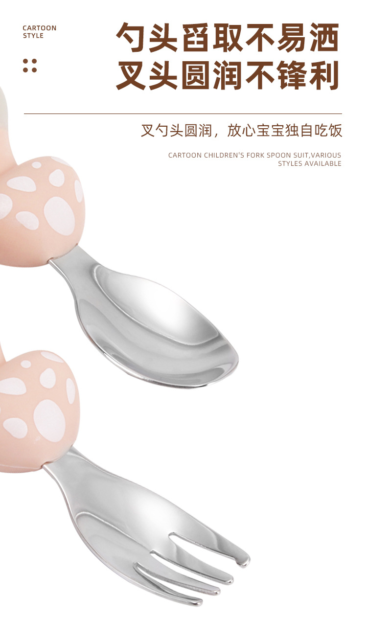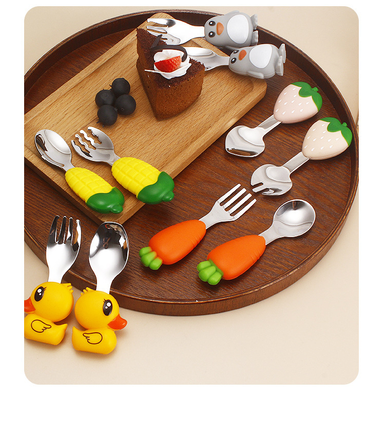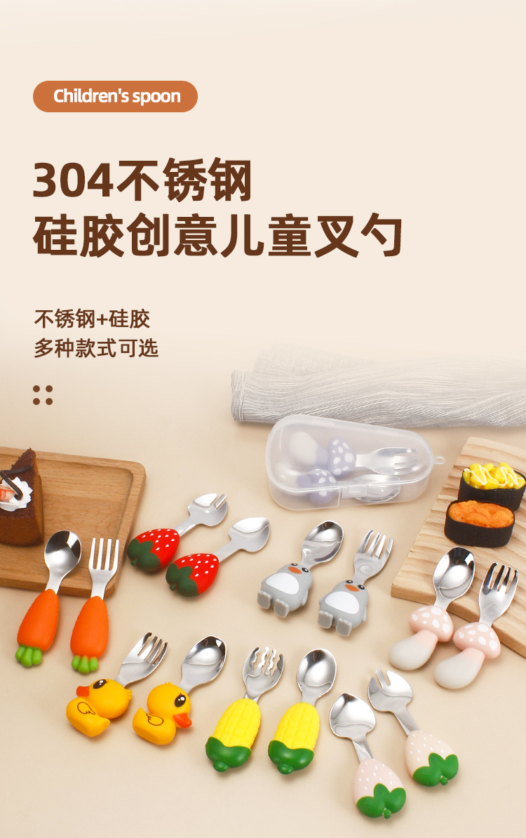 304 vajilla infantil de acero inoxidable dibujos animados creativos cucharas tenedores, cucharas de alimentos complementarios para bebés, vajilla de silicona encantadora, productos maternos e infantiles