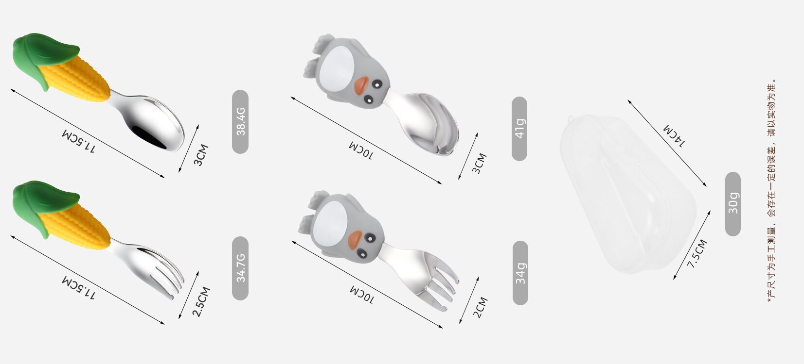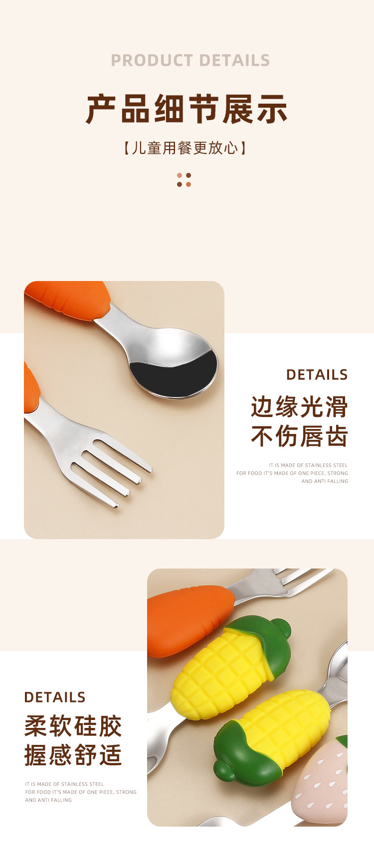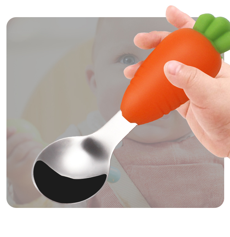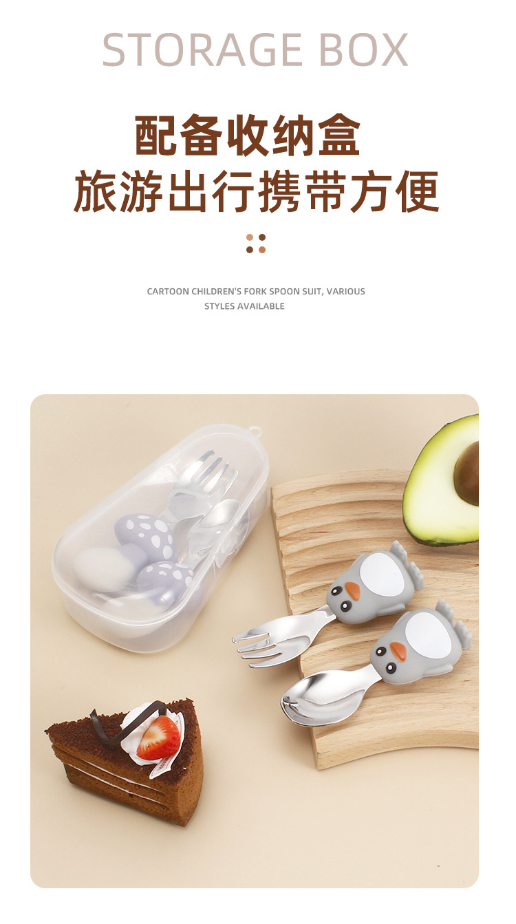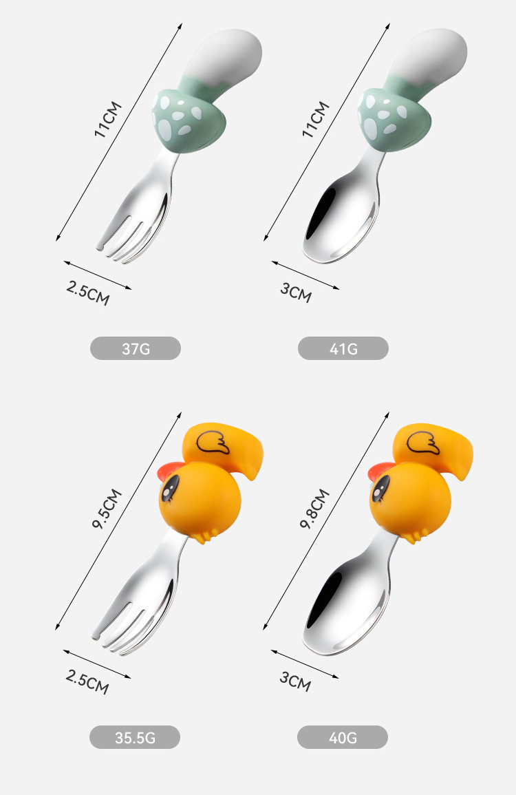 304 vajilla infantil de acero inoxidable dibujos animados creativos cucharas tenedores, cucharas de alimentos complementarios para bebés, vajilla de silicona encantadora, productos maternos e infantiles
