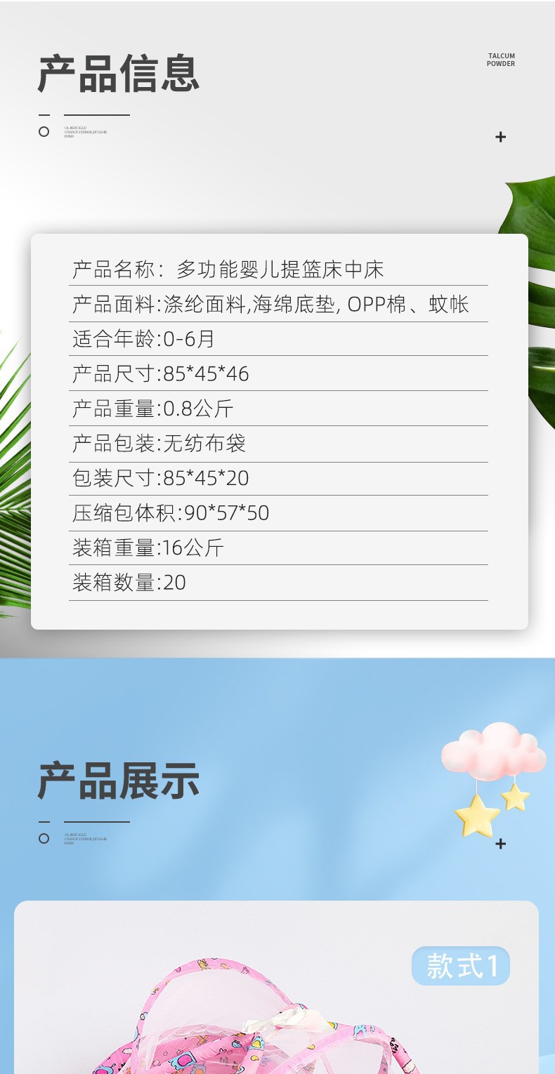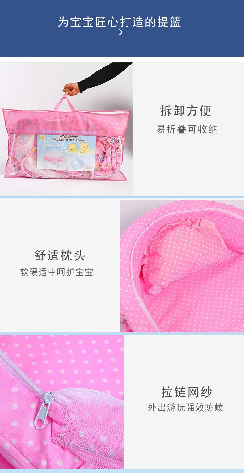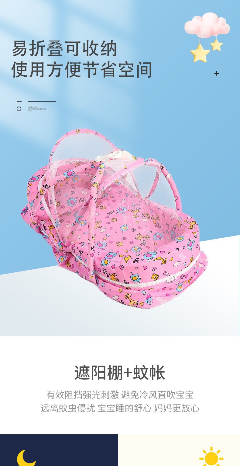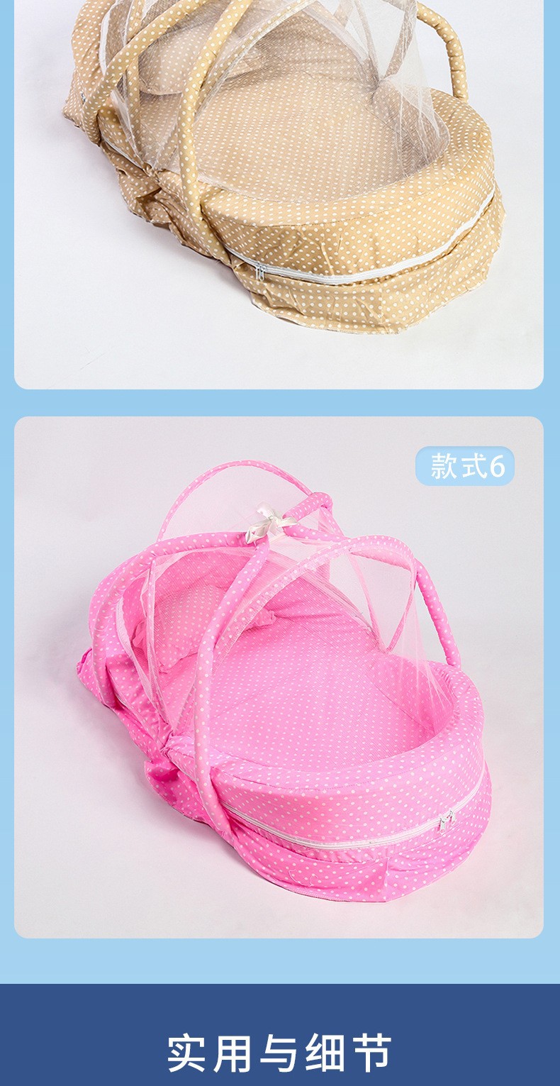 La cuna portátil del bebé se puede quitar con mosquiteros. el fabricante viaja con una cesta plegable para la cuna.