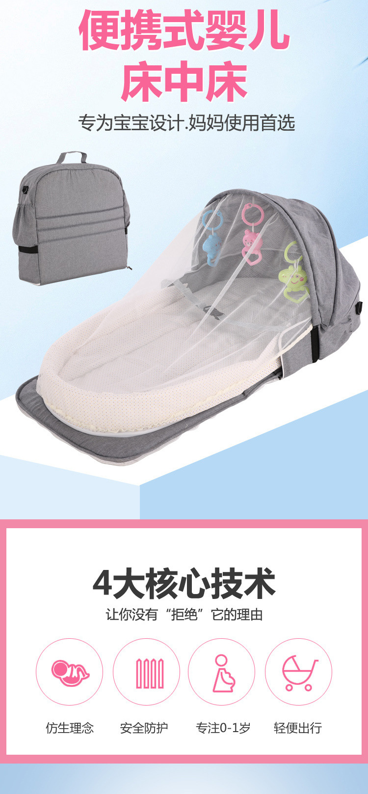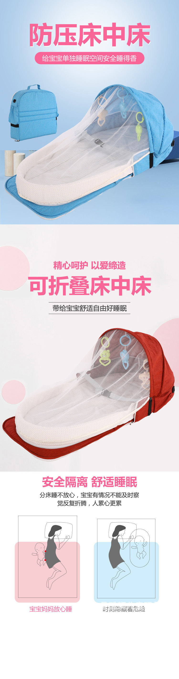 Cuna plegable portátil a prueba de presión, cuna media, bebé recién nacido aislado, cuna de viaje biónica, mosquitero