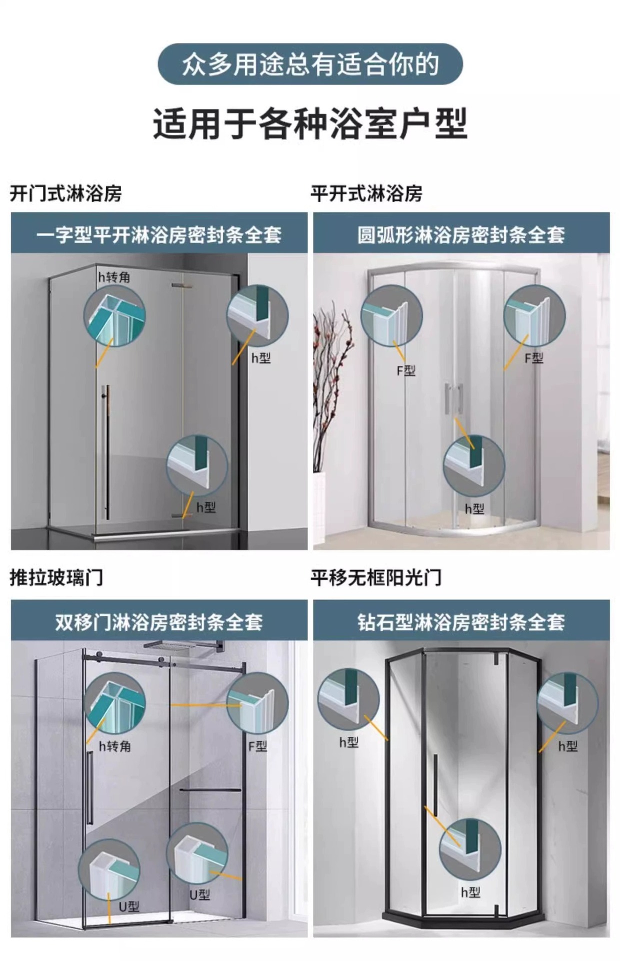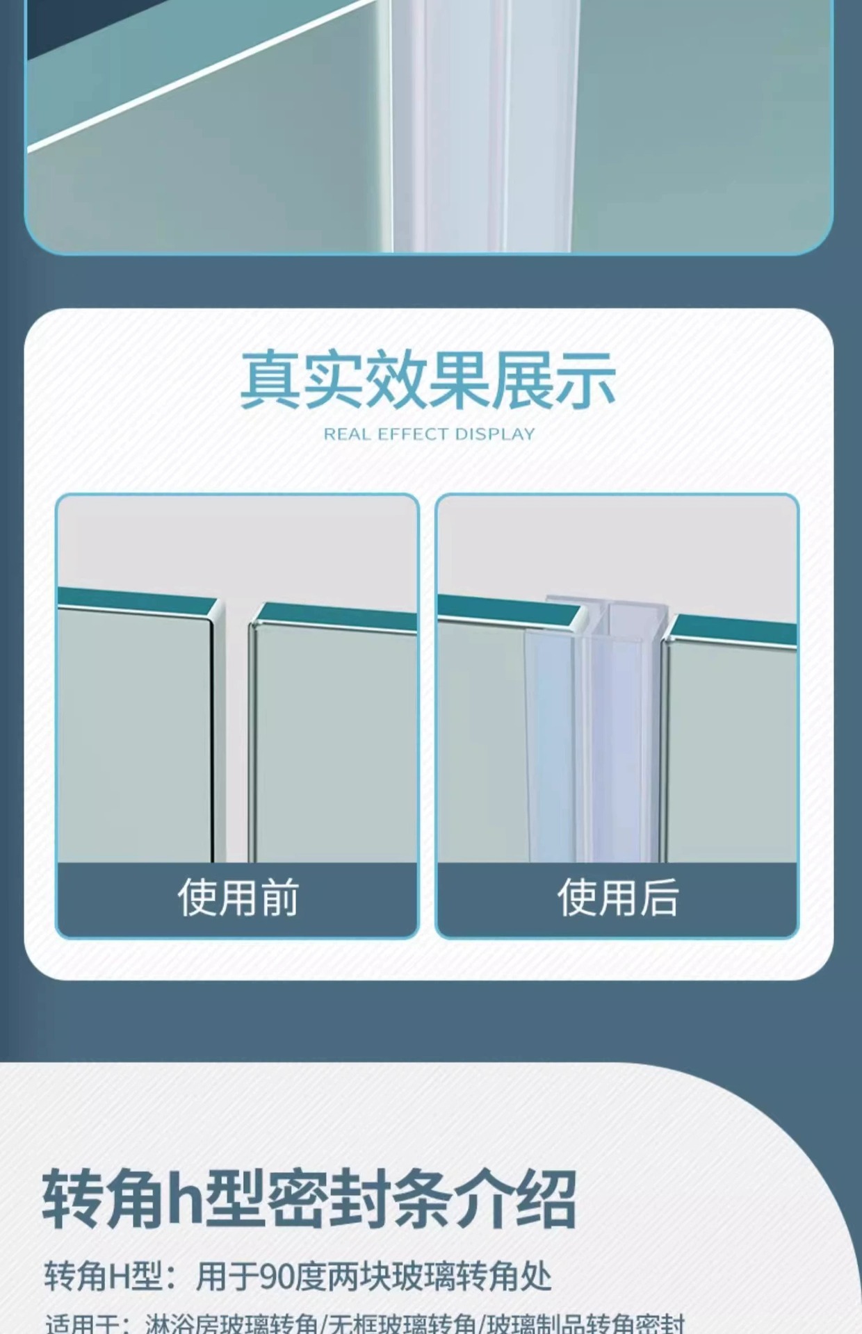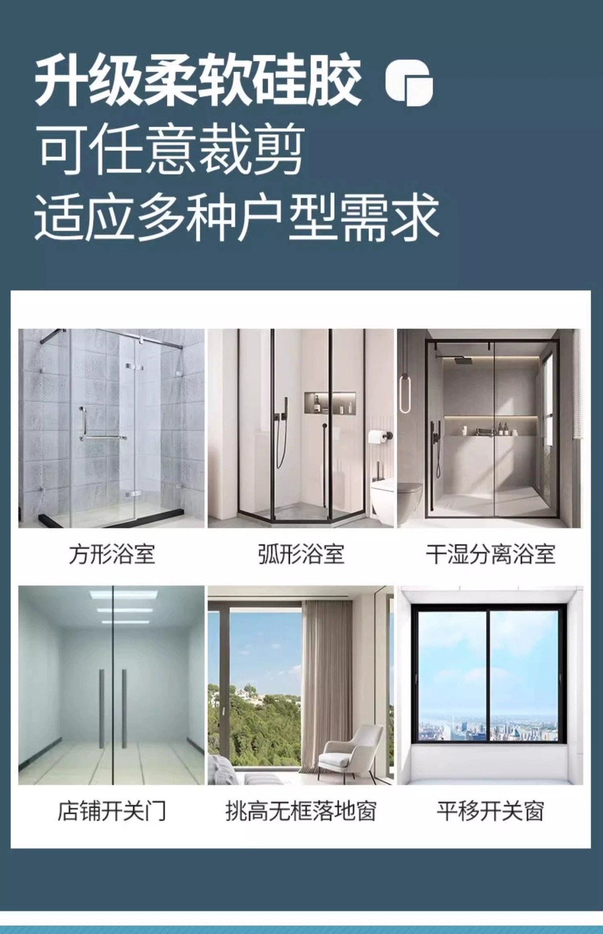 La puerta de vidrio está cubierta con tiras de sellado, tiras de protección contra el viento en la grieta de la puerta, tiras de pegamento impermeables y transparentes en la Sala de ducha de la ventana multiespecificaciones en forma de H.