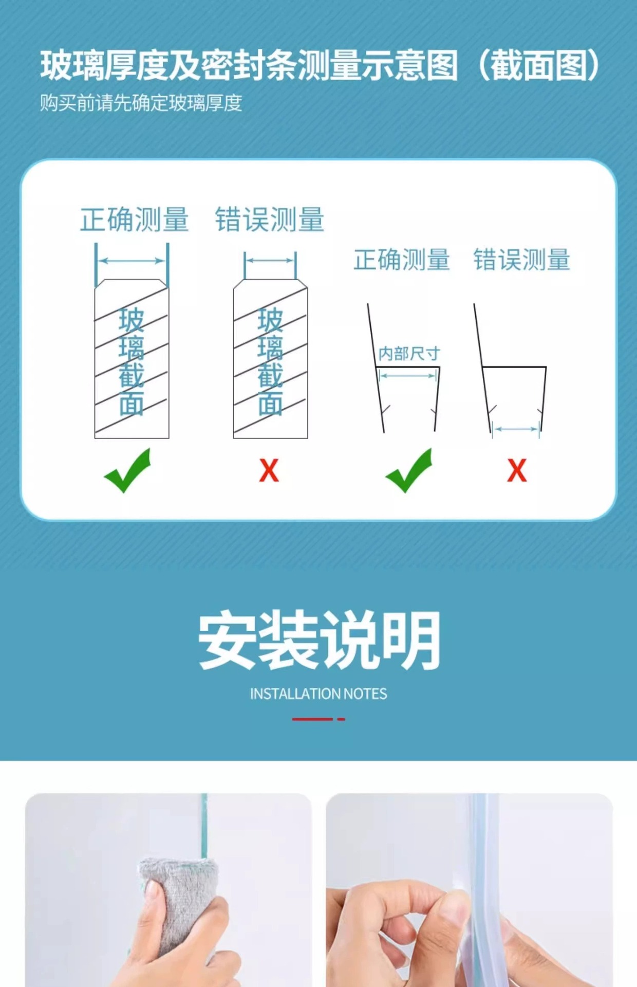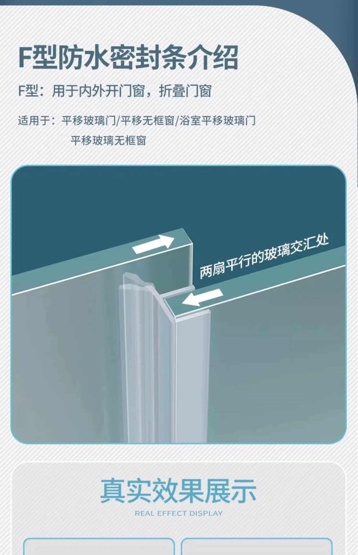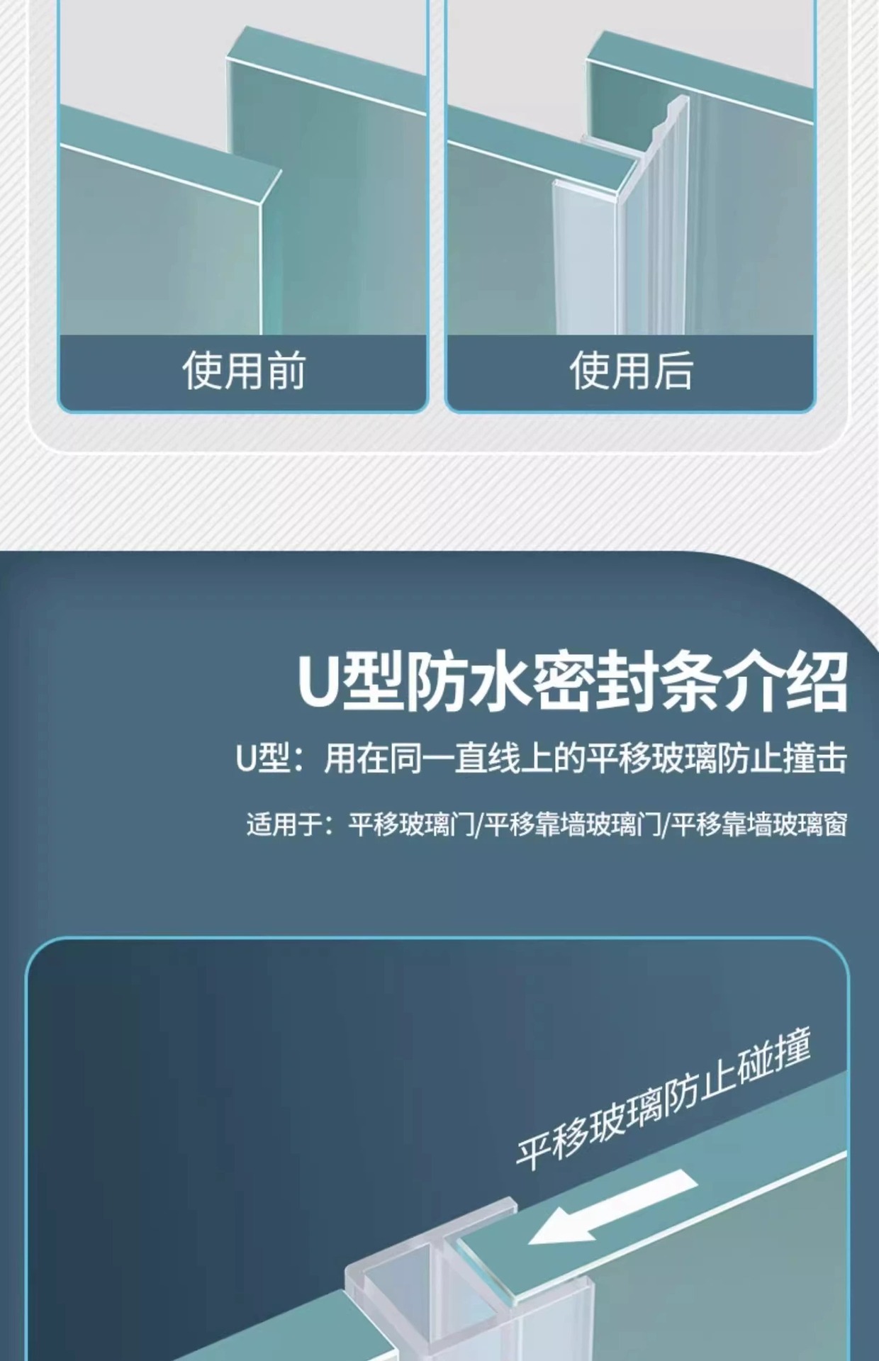 La puerta de vidrio está cubierta con tiras de sellado, tiras de protección contra el viento en la grieta de la puerta, tiras de pegamento impermeables y transparentes en la Sala de ducha de la ventana multiespecificaciones en forma de H.