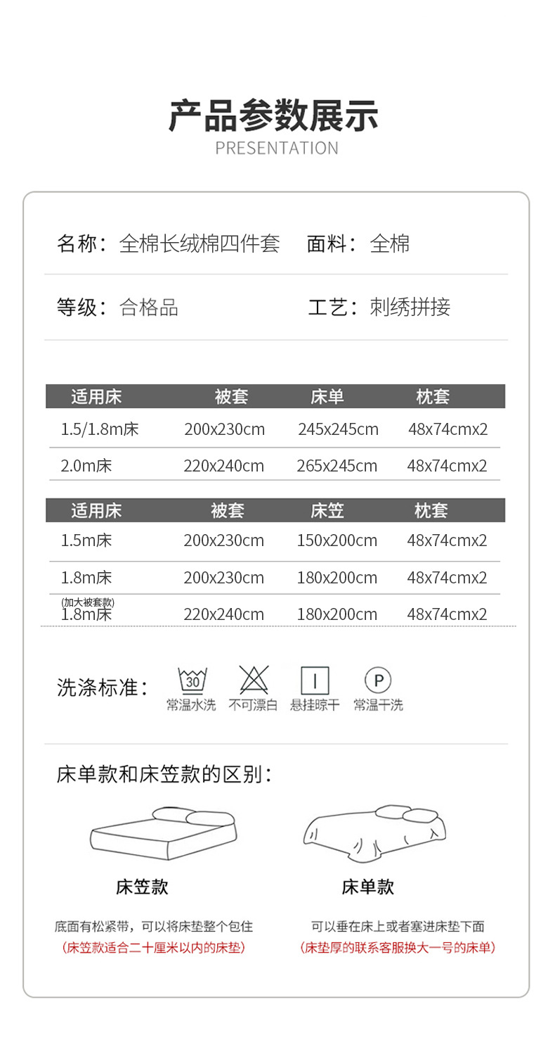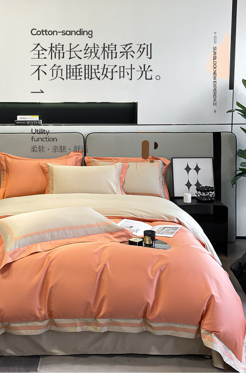 Categoría a 160 juegos de algodón puro de cuatro piezas de algodón ligero y de lujo, juegos de algodón completo de lana larga, sábanas, ropa de cama, ropa de cama de color sólido