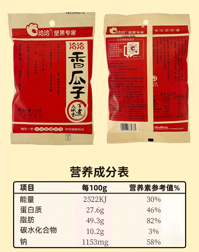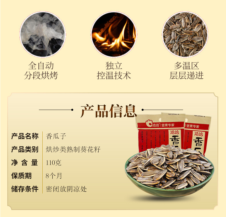 Bolsa de 110g de semillas de melón fragantes qiaqia con fragancia de leche y cinco sabores de nueces fritas con semillas de girasol bocadillos casuales al por mayor
