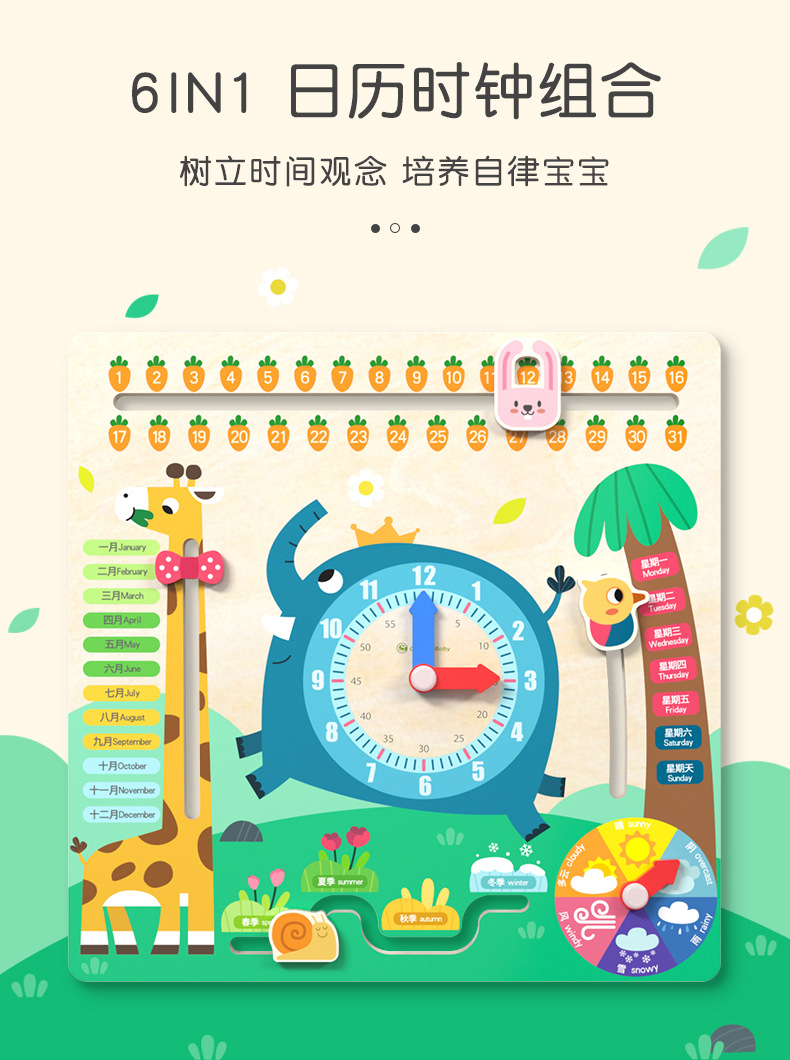 Goryeobaby tablero de rompecabezas de reloj de calendario los niños aprenden el tiempo relojes cognición ayudas didácticas de la escuela primaria juguetes de educación temprana