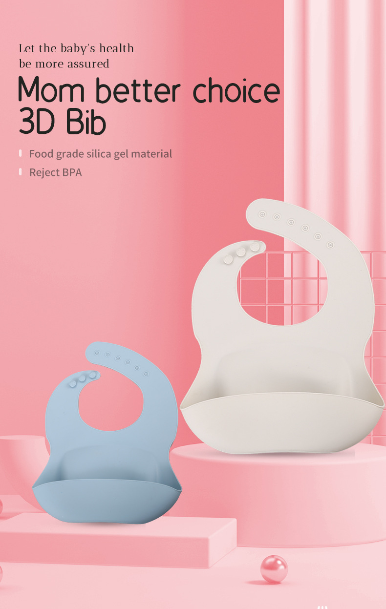 Baberos de silicona transfronterizos para bebés baberos de arroz impermeables, a prueba de polvo y sucios 3D baberos de comida sin lavado para niños baberos