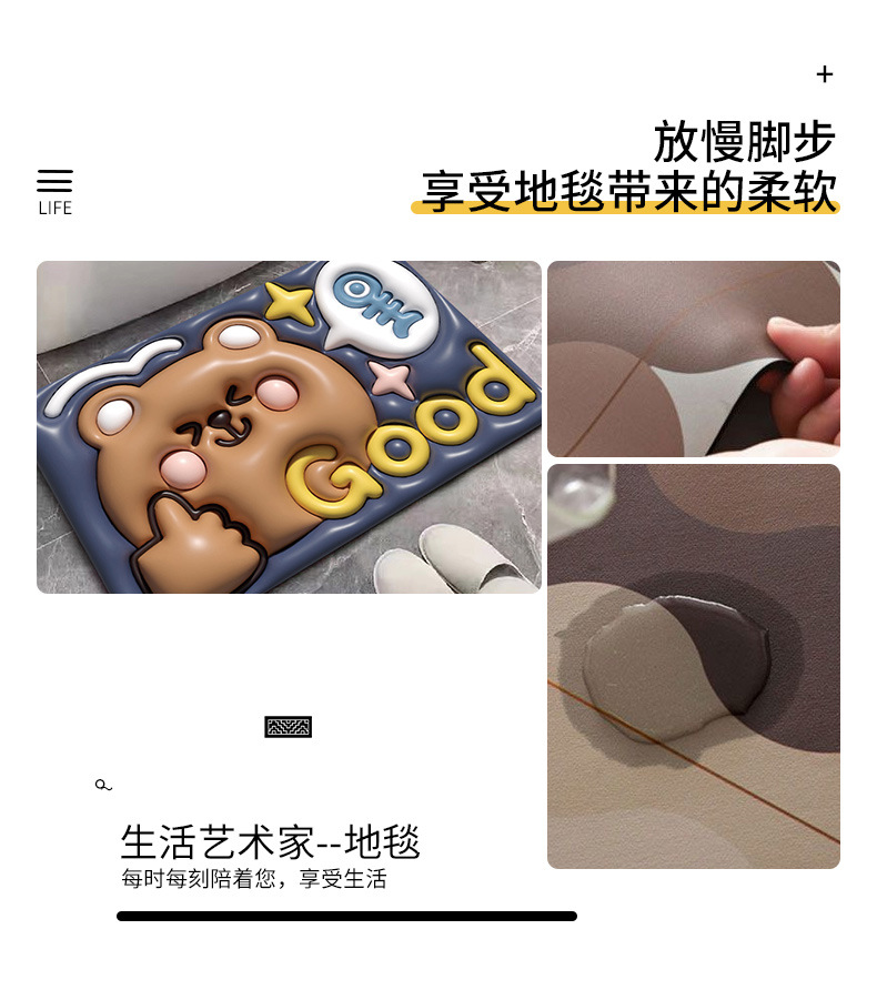 Nuevas almohadillas de barro de diatomeas blandas visuales 3D estilo almohadilla antideslizante para baño almohadilla de suelo de absorción de agua y secado rápido para baño