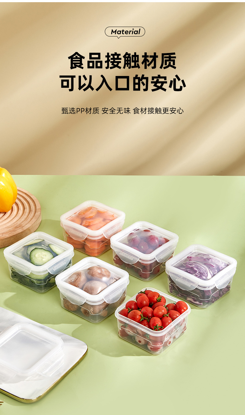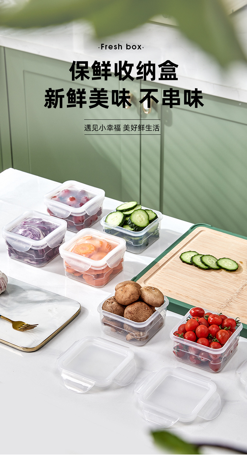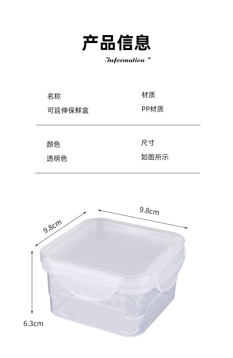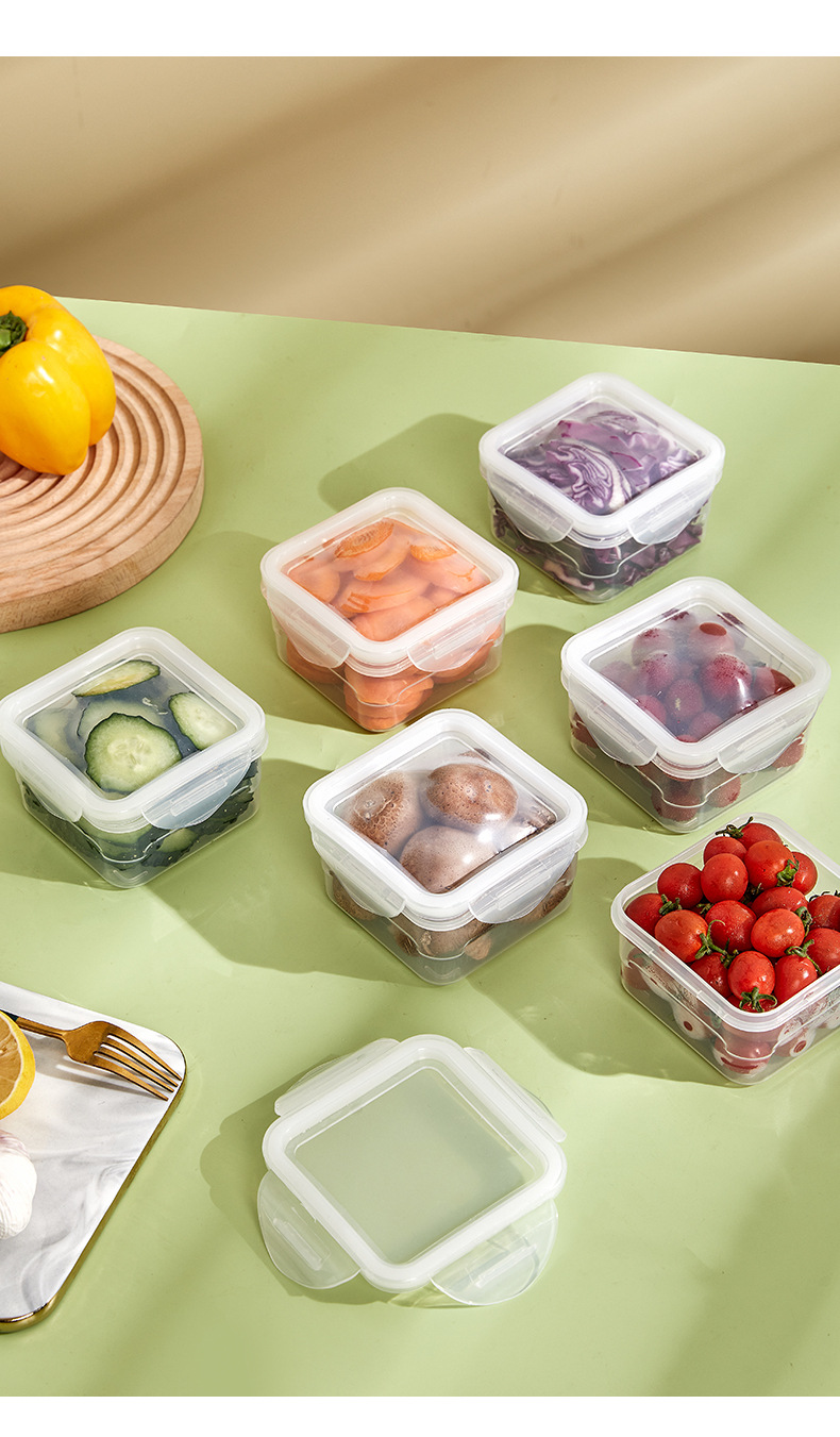 Caja de conservación de alimentos transparente al por mayor se puede extender refrigerador caja de almacenamiento de congelación caja de plástico caja de almacenamiento de frutas cuadradas