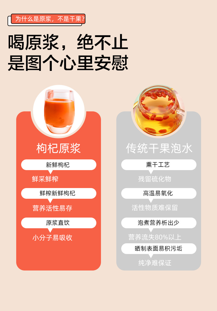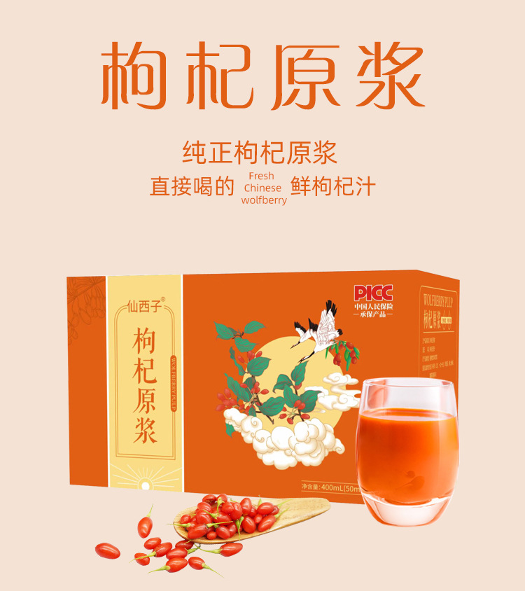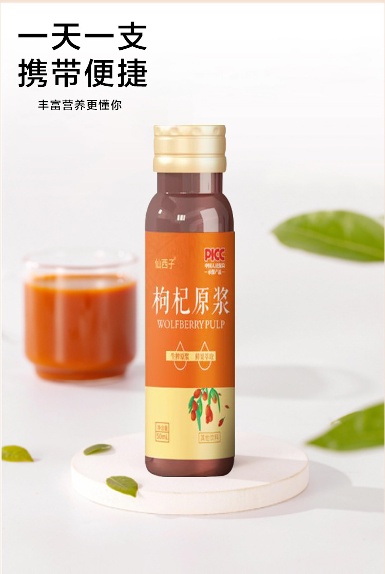 Pulpa cruda de wolfberry recién exprimida 50 ml botella pequeña de pulpa cruda de wolfberry portátil listo para comer pulpa cruda de wolfberry rojo al por mayor