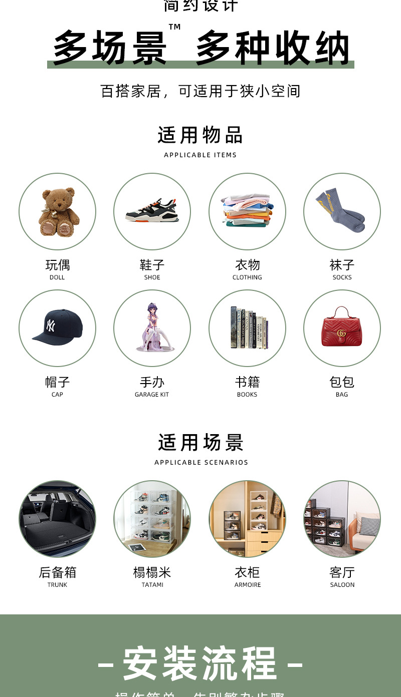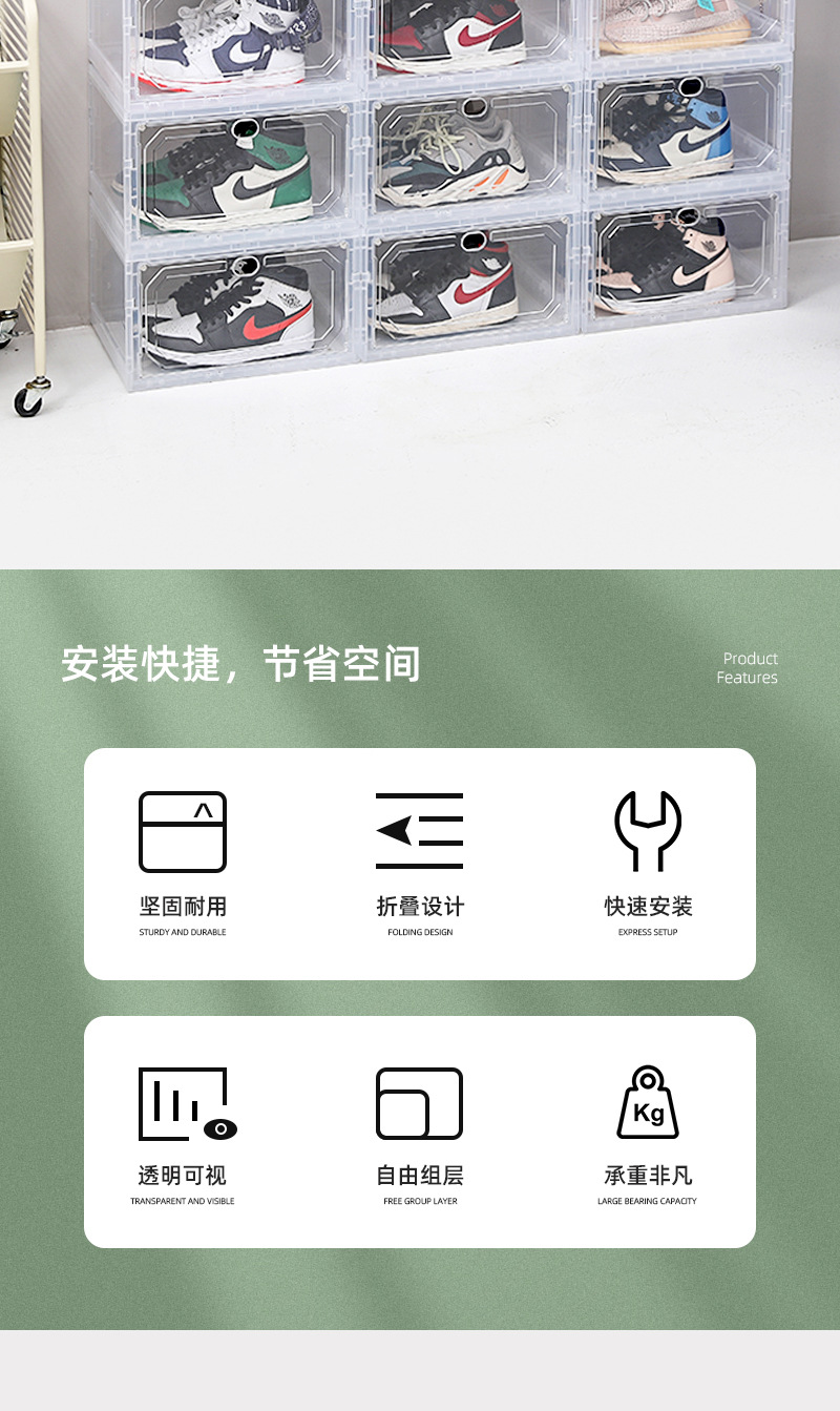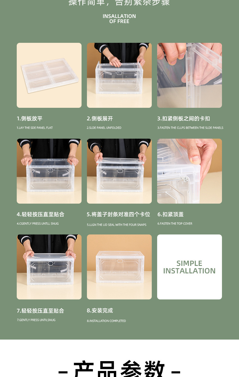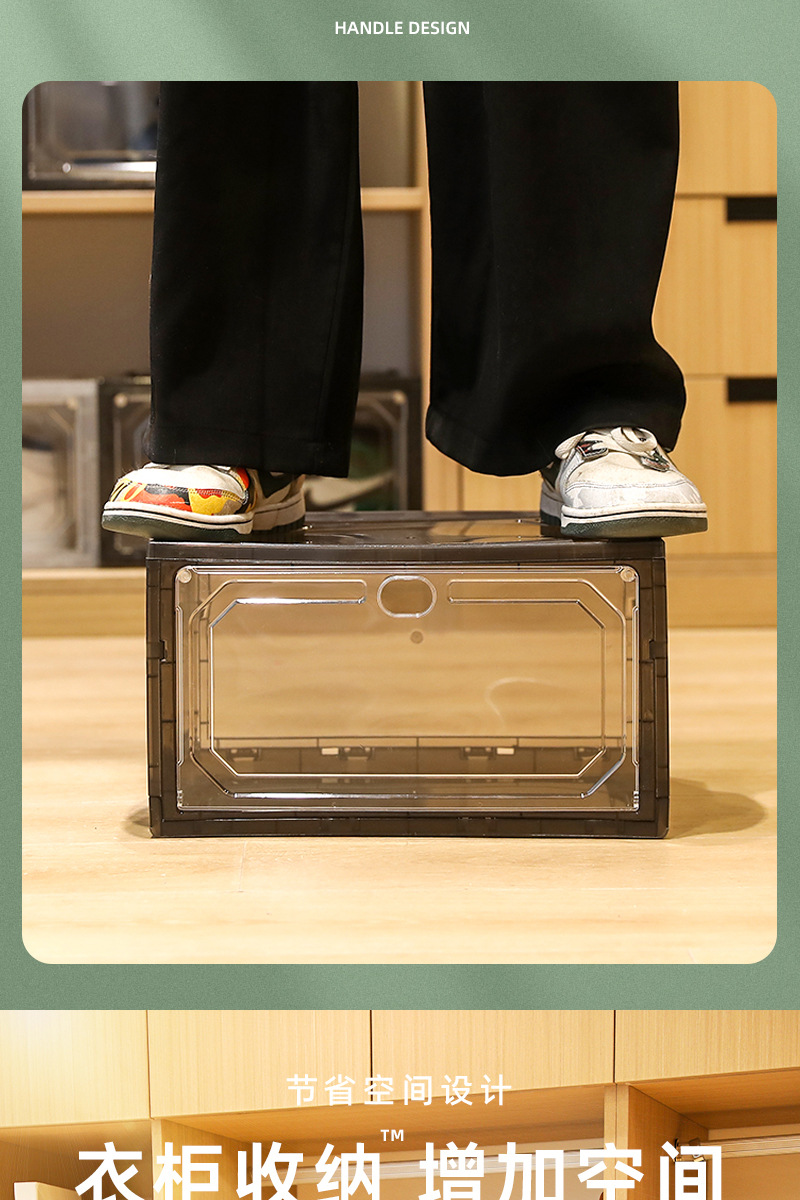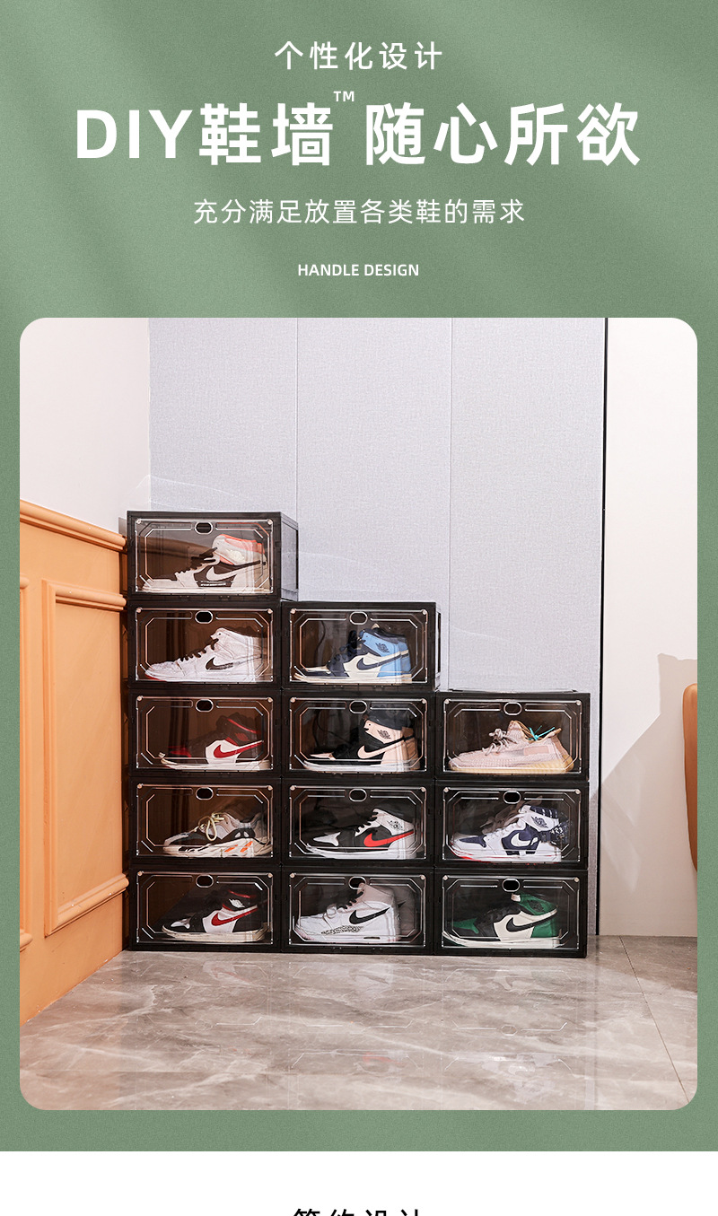 Caja de zapatos de baloncesto abierta en el lado de absorción magnética integral sin montaje, caja de zapatos de almacenamiento transparente grande de acrílico, venta directa del fabricante de cajas de zapatos