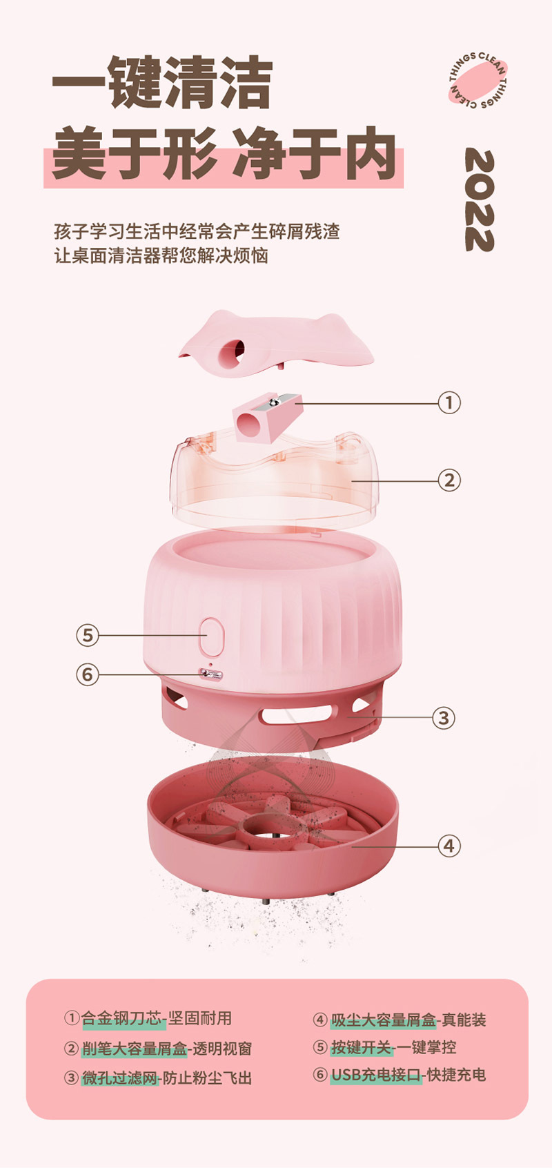 Aspiradora de sacapuntas multifuncional recargada por USB pequeña limpiador de escritorio de oficina de aprendizaje regalo de papelería estudiantil