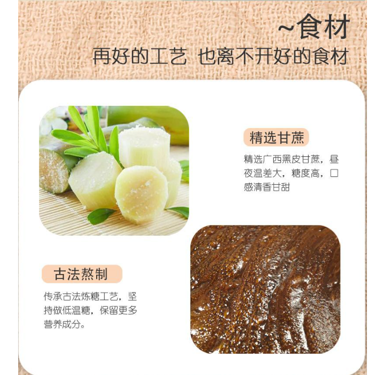 Envío al por mayor de un campo de azúcar negro puro, métodos antiguos tradicionales para cocinar alimentos de ocio, condimentos, condimentos y bocadillos
