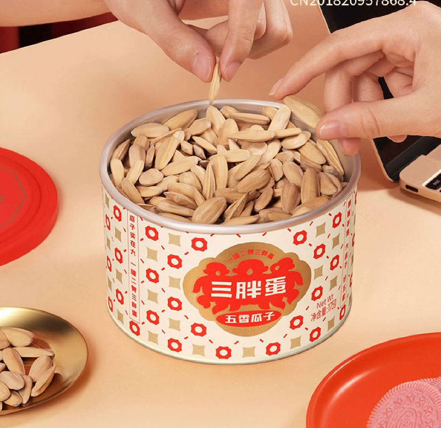 Venta al por mayor de té gratis, bocadillos de comida de ocio, compras grupales de año nuevo, tres huevos gordos y cinco fragancias, semillas de melón originales 168g