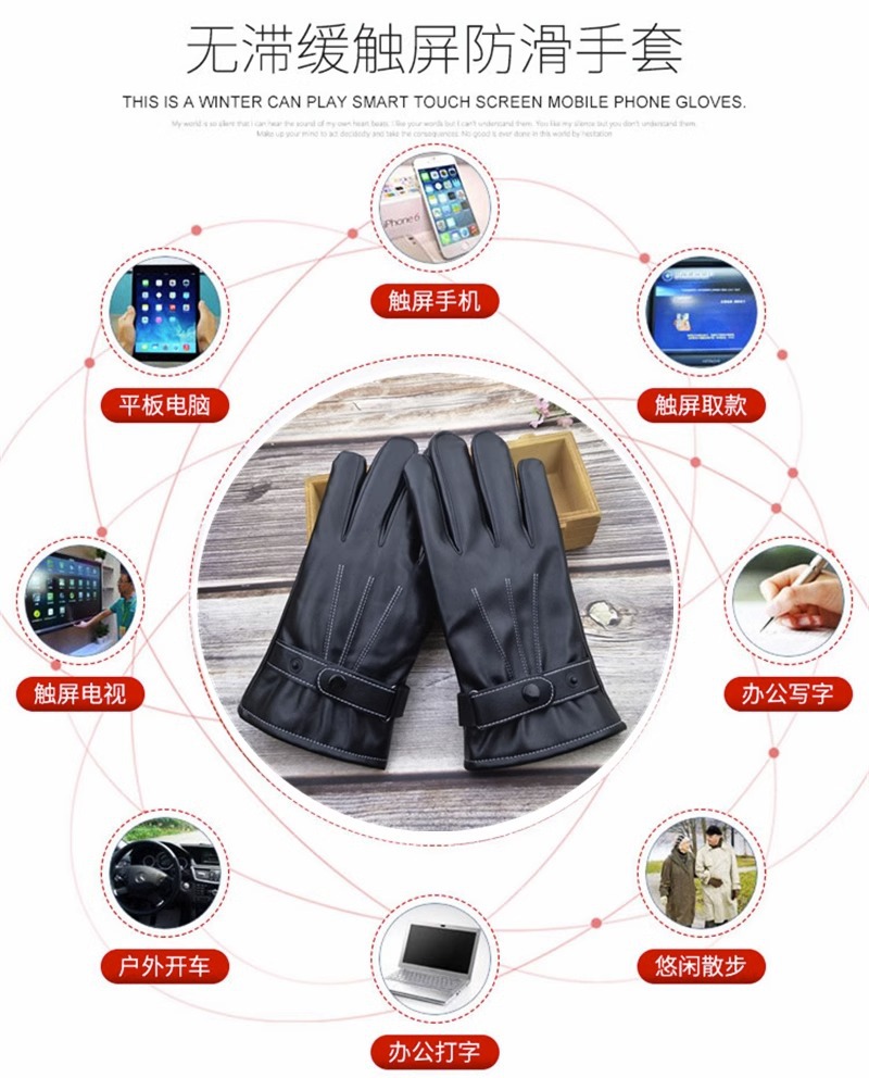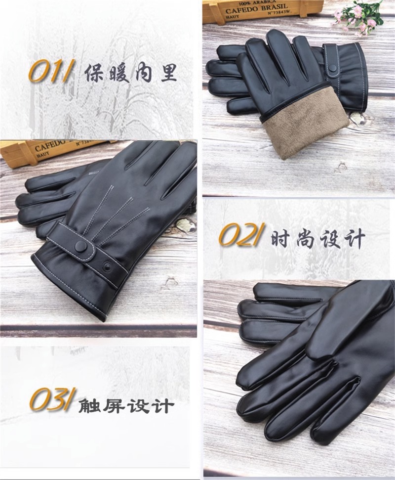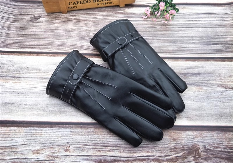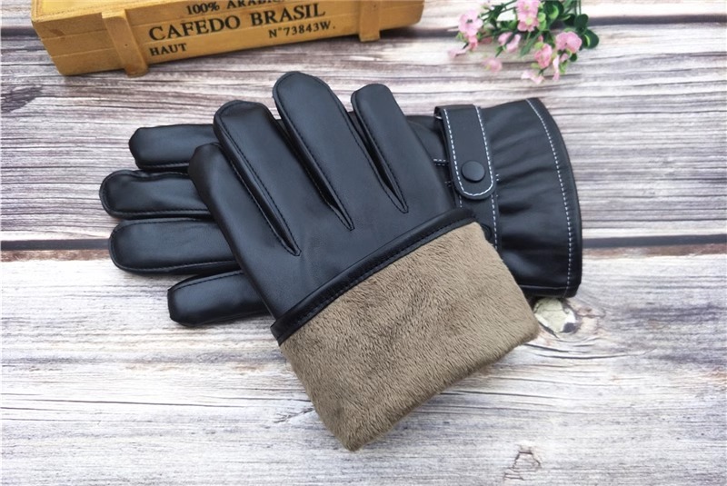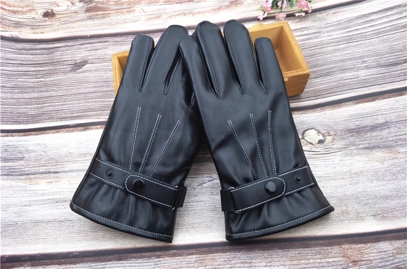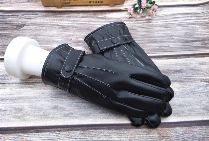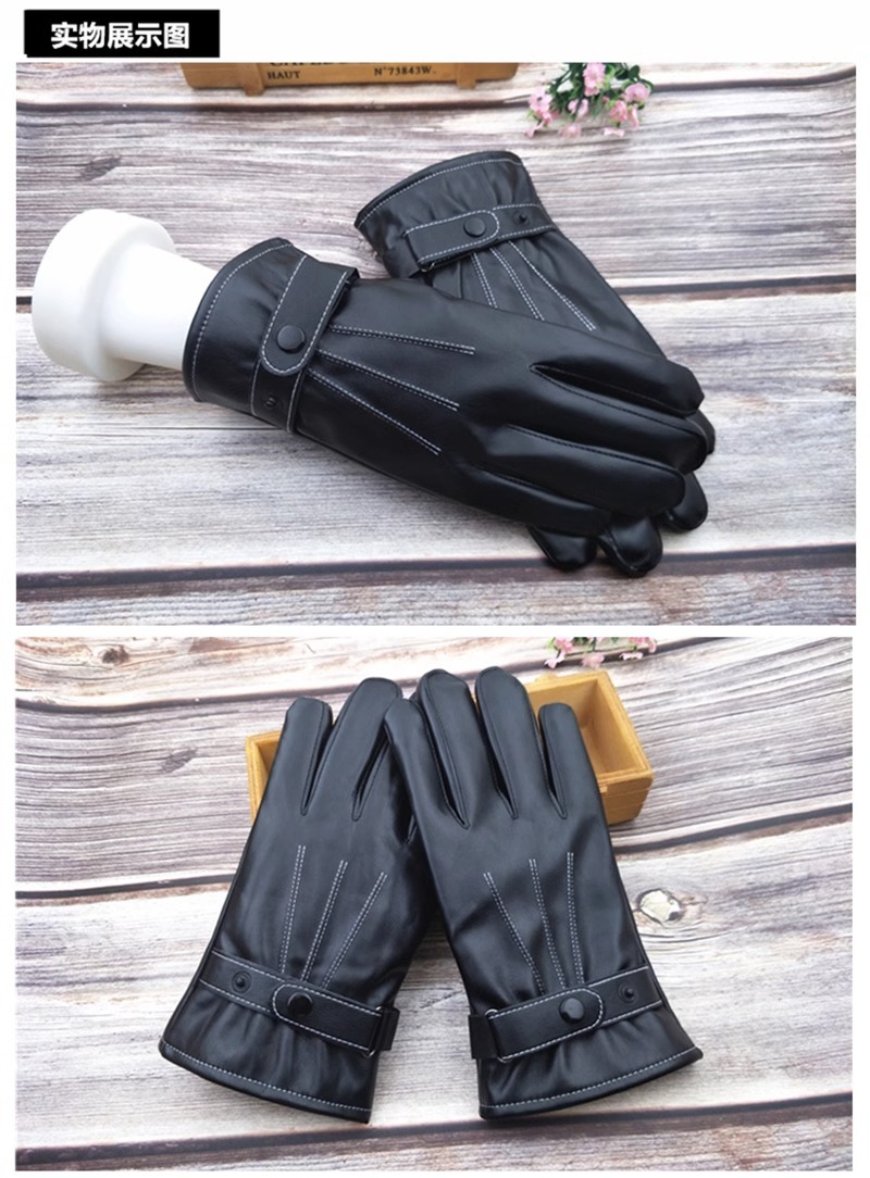En invierno, los guantes de cuero Pupi masculinos se engrosan con terciopelo para mantenerse calientes al aire libre y los guantes de ciclismo de motocicleta con pantalla táctil a prueba de frío.