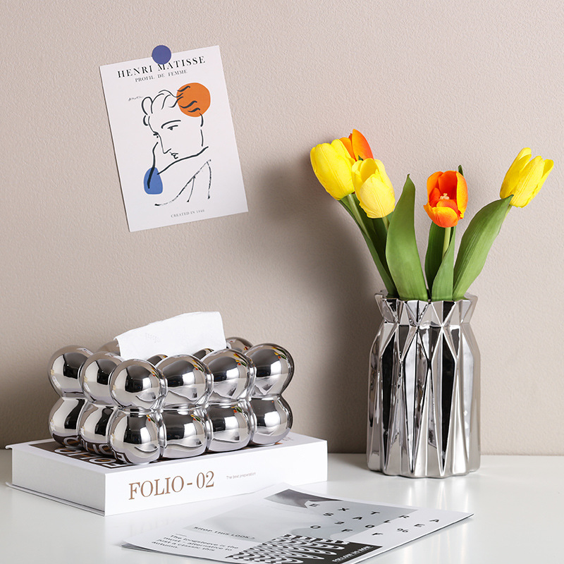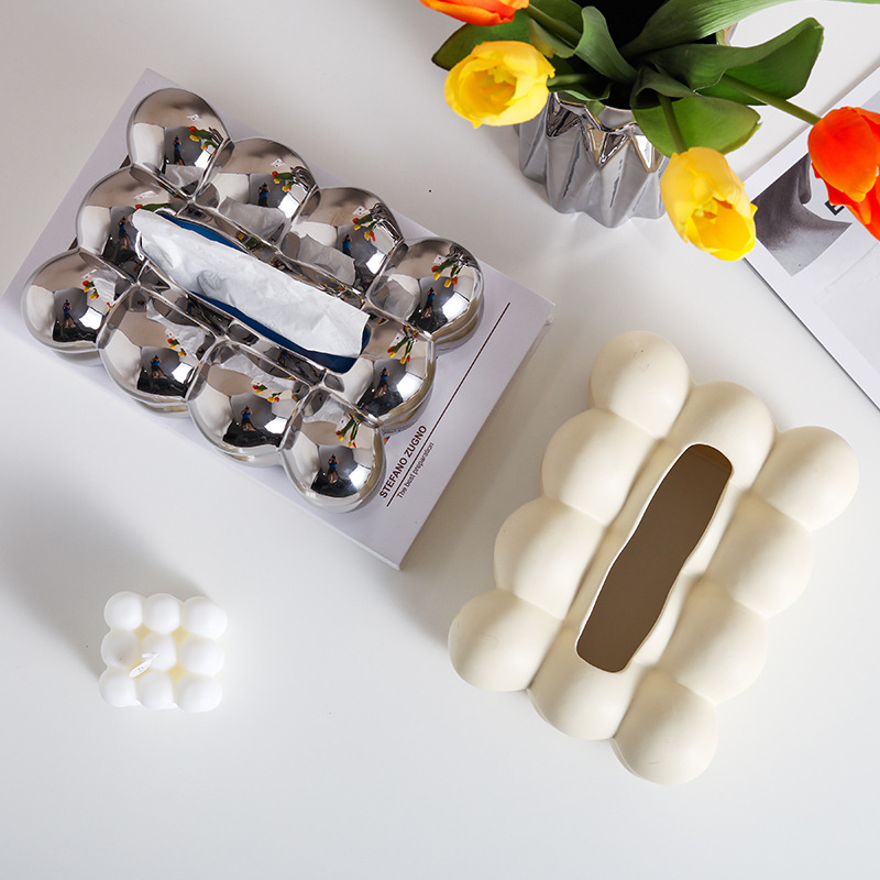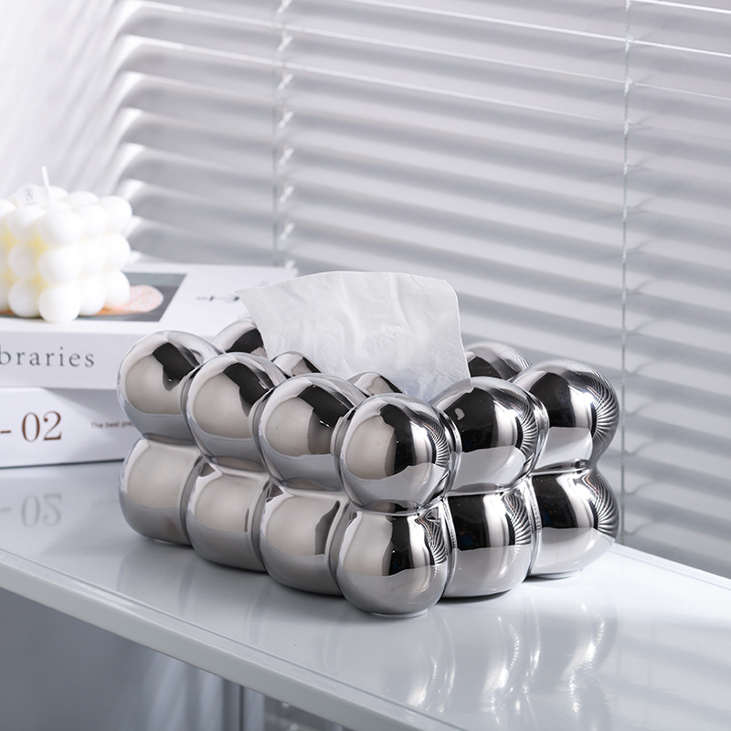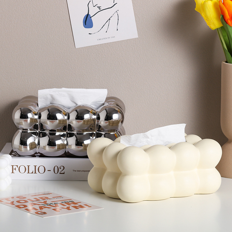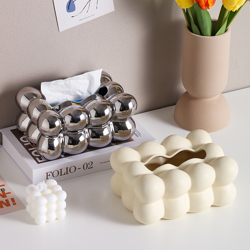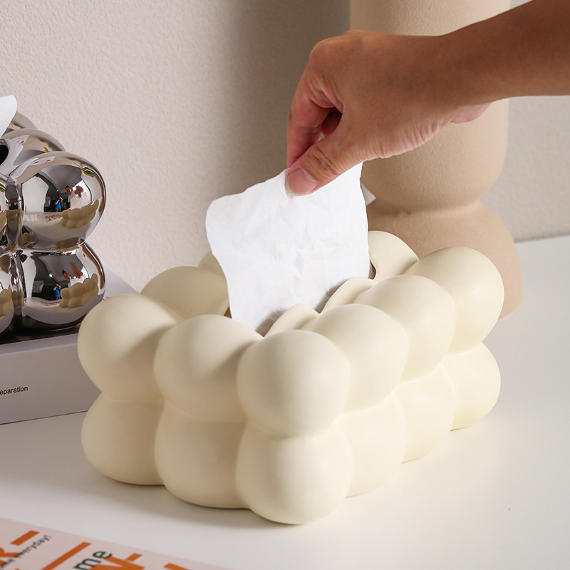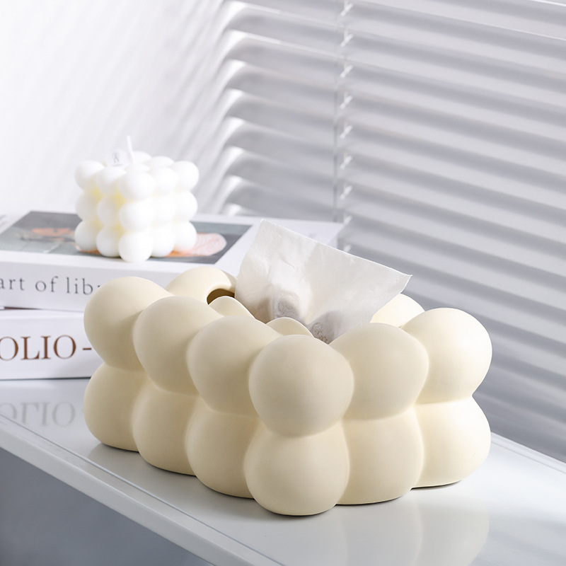 Caja de toallas de papel de bola de sentido avanzado, caja de almacenamiento de toallas de papel en la cabecera de la cama de insfeng, nueva caja de bombeo de papel cerámico minimalista de nicho