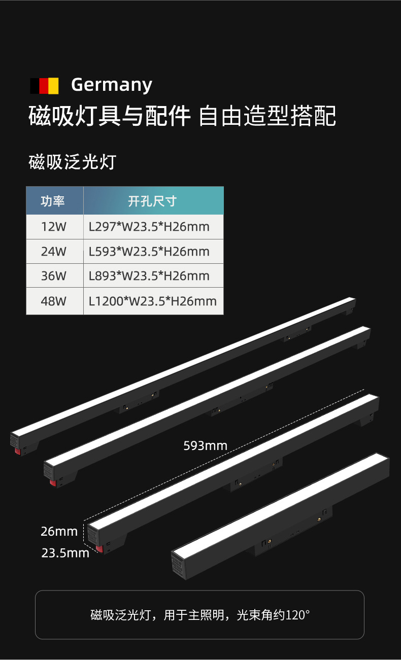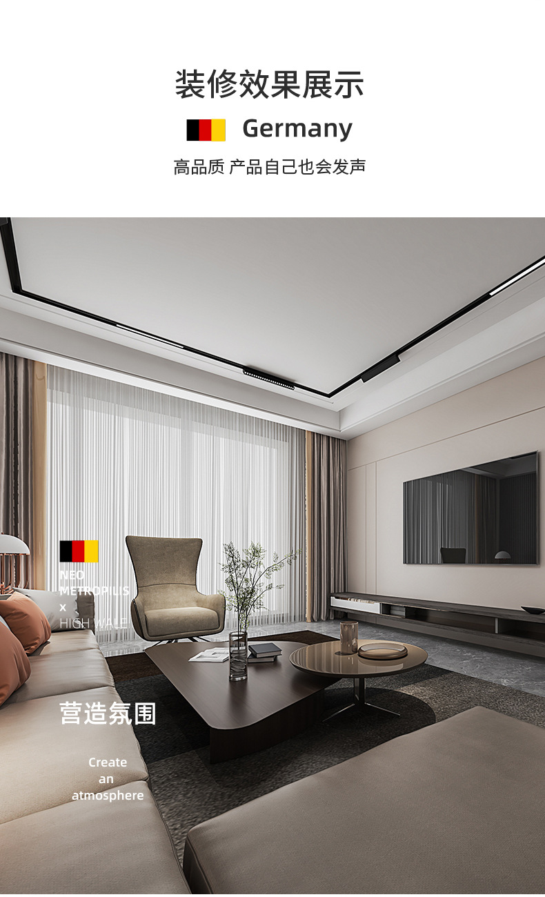 Luz de vía de absorción magnética incrustada sin luz principal, iluminación de la Sala de estar, luz lineal sin marco oculta en el hogar, luz de inundación LED