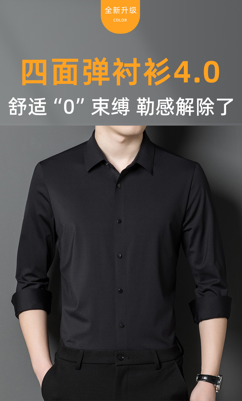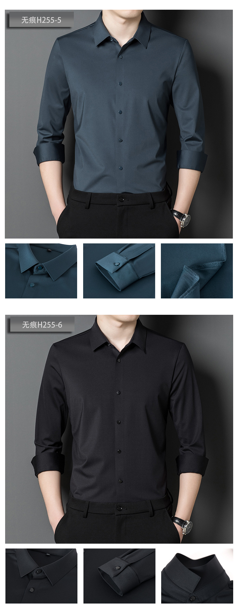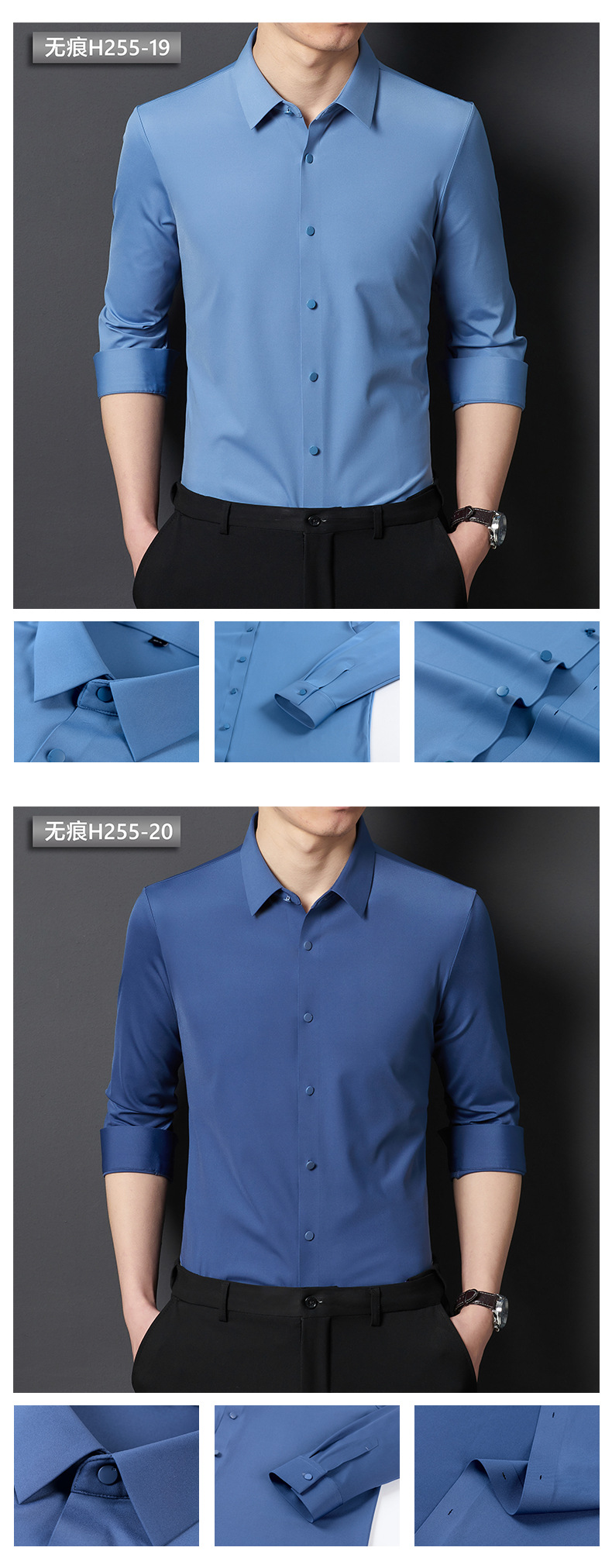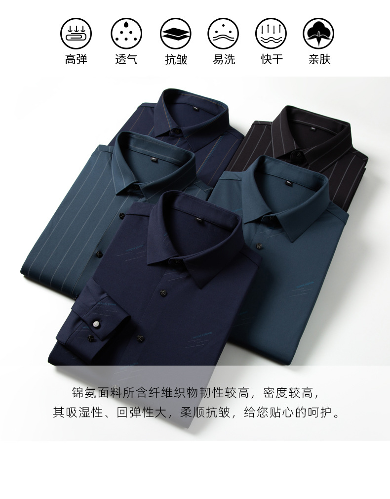 En otoño, la nueva camisa sin marcas de alta elasticidad de Jin - amoníaco, la camisa de lujo masculina y sin permanente, la camisa de negocios casuales antiarrugas masculina