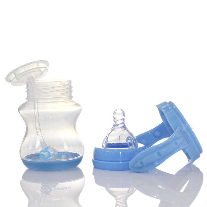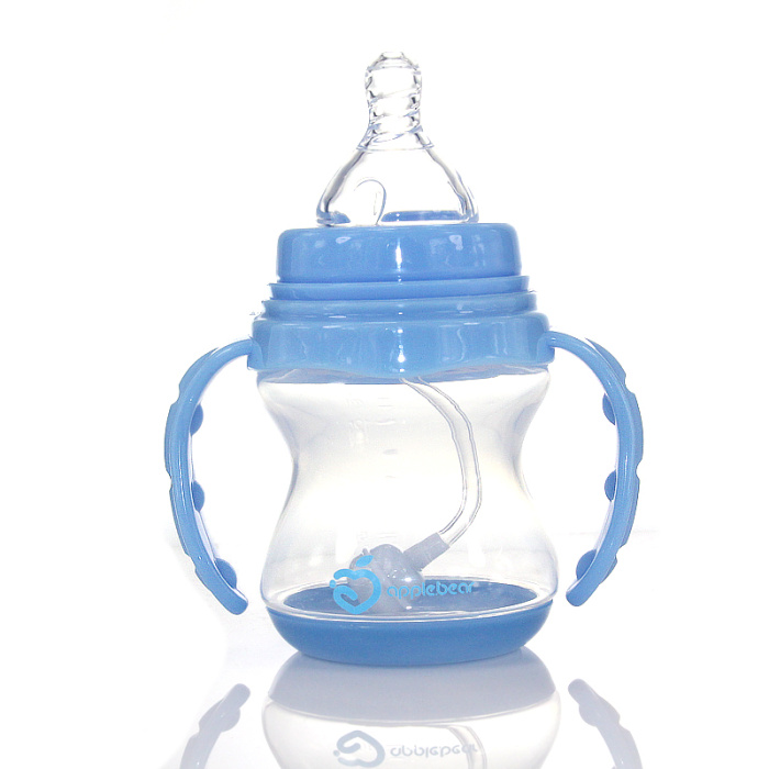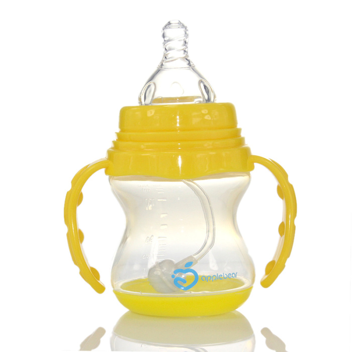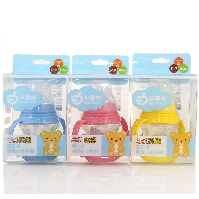 感温PP奶瓶,母乳实感奶嘴,底部超过37摄氏度会变色;瓶身采用高透明环保材料聚丙烯(PP)制成,安全无毒,不含干扰荷尔蒙分泌的化学物质双酚A(BPA)。韧度高,具有较强的耐冲击性,不易破裂,并可抗多种有机溶剂和酸碱腐蚀.自动吸管设计,打破传统奶瓶拿高吸奶方式,任何姿势均能吸吮自如。加上把柄,使用起来更方便。奶嘴采用食品级硅胶经特殊工艺制成,软硬适中,触感舒适。空气阀设计,瓶内外压力能自动保持平衡,奶嘴不易吸扁,让宝宝吮吸流畅,同时可避免因吸入过多空气而引起呕吐或呛奶。十字孔设计,具有不吸不漏及随婴儿吸吮力的大小自动调节出奶量的功效。各部件均可耐高温至120度,可在水中煮沸消毒。使用前将各部件清洗干净并放入水中煮沸消毒5分钟。煮沸消毒时水量应足够,避免产品因长时间接触到温度较高的锅底或锅沿而导致变形。冲调好奶水后,将奶嘴套入螺牙并轻轻拉出,旋上即可使用。