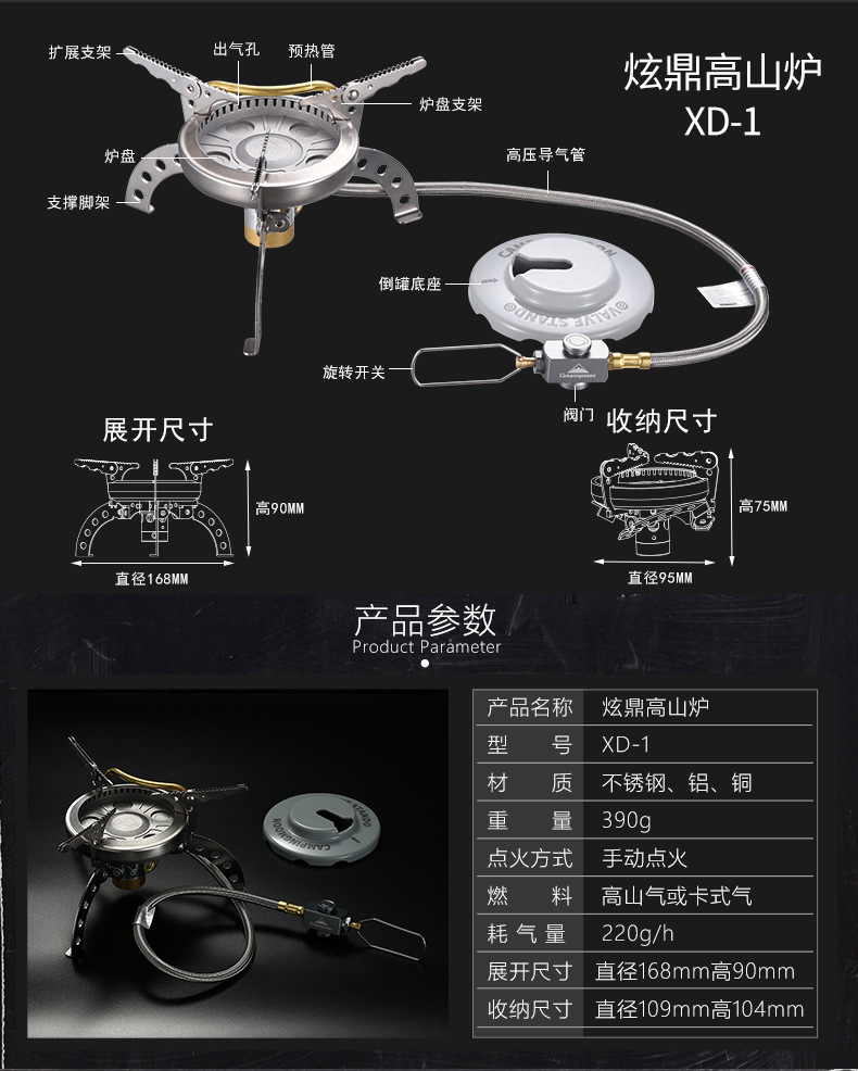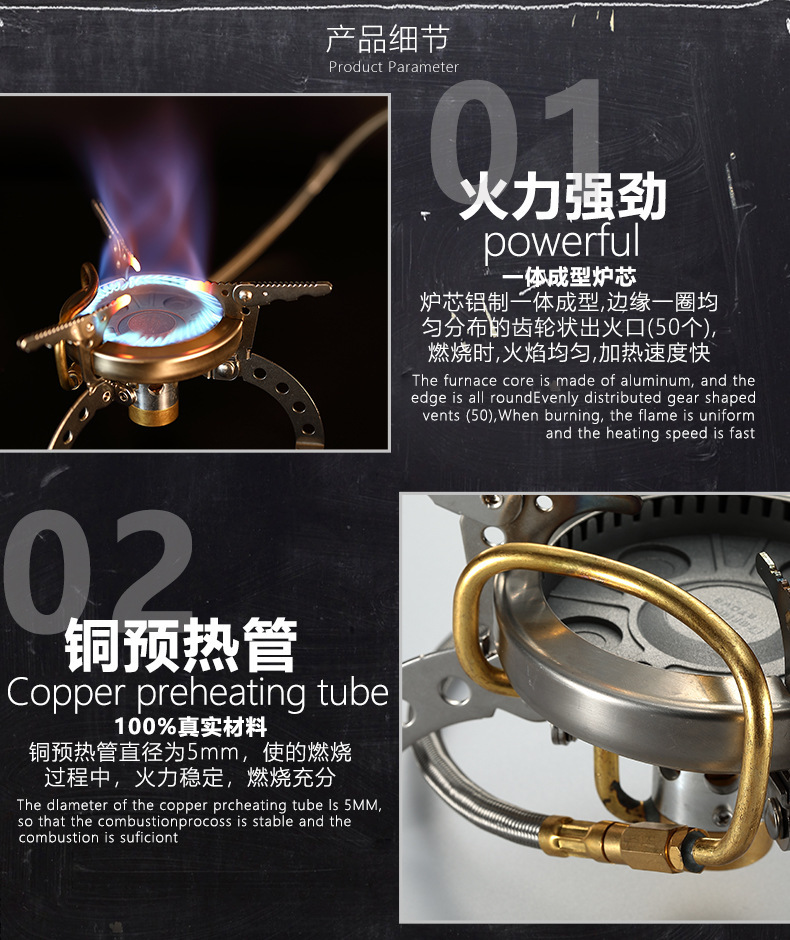 El fuego en la cabeza del horno de campamento ahorra gas, el horno de picnic, las herramientas de fuego de campamento
