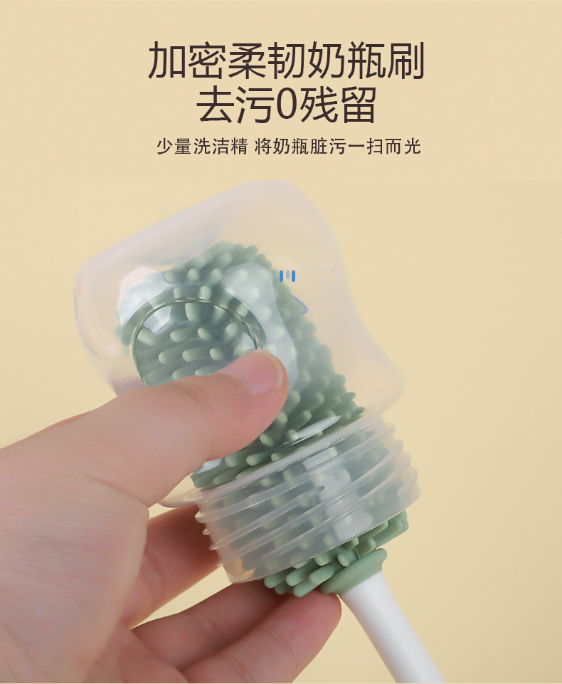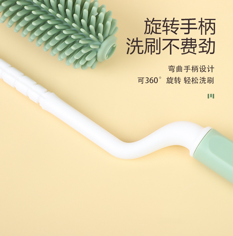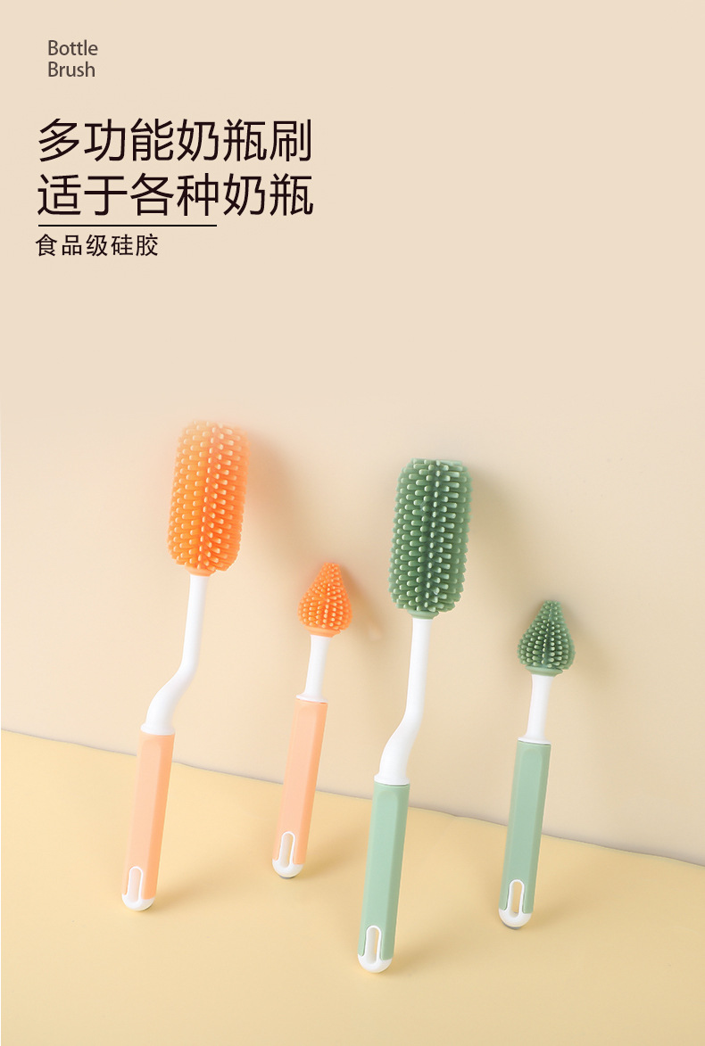 El fabricante vende directamente biberón para limpiar y cepillar el conjunto de silicona de dos en uno de cepillo de chupete de mango largo para bebés recién nacidos.