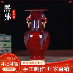 Jarrón antiguo Jun porcelana adornos retro botella de porcelana de dos orejas Sala de estar decoración de entrada cerámica botella de artesanía antigua