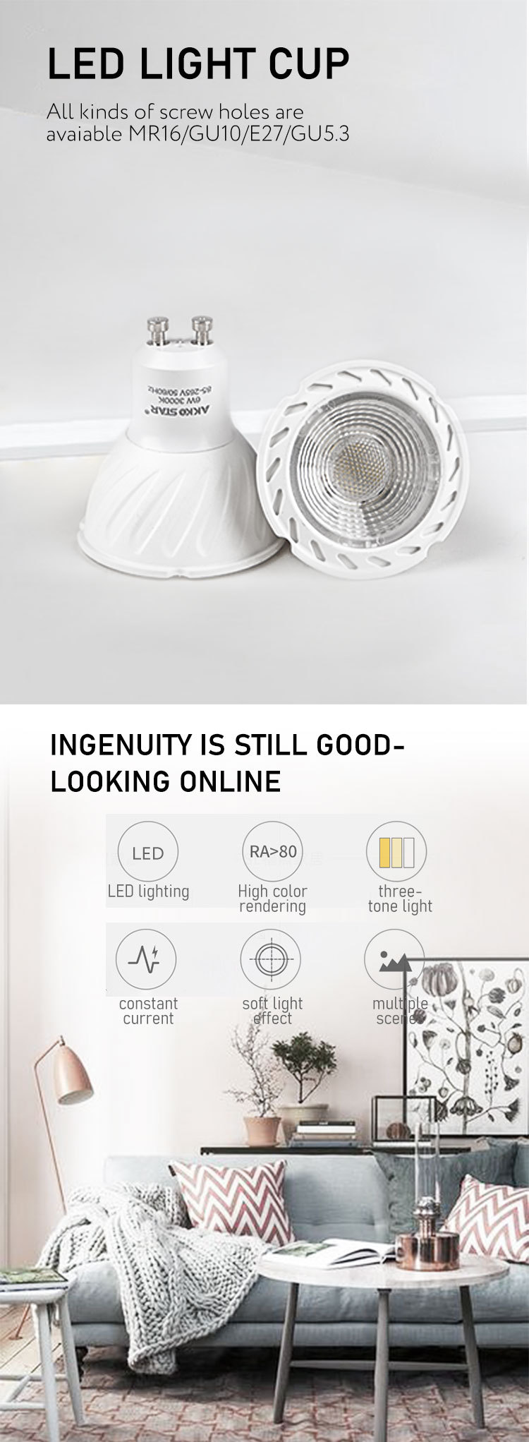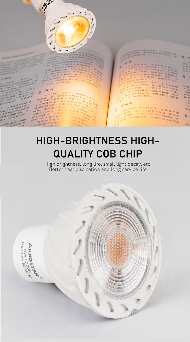 Akkostar 6w gu10 tipo de titular LED de alta corriente taza de luz blanca, cálida y neutral