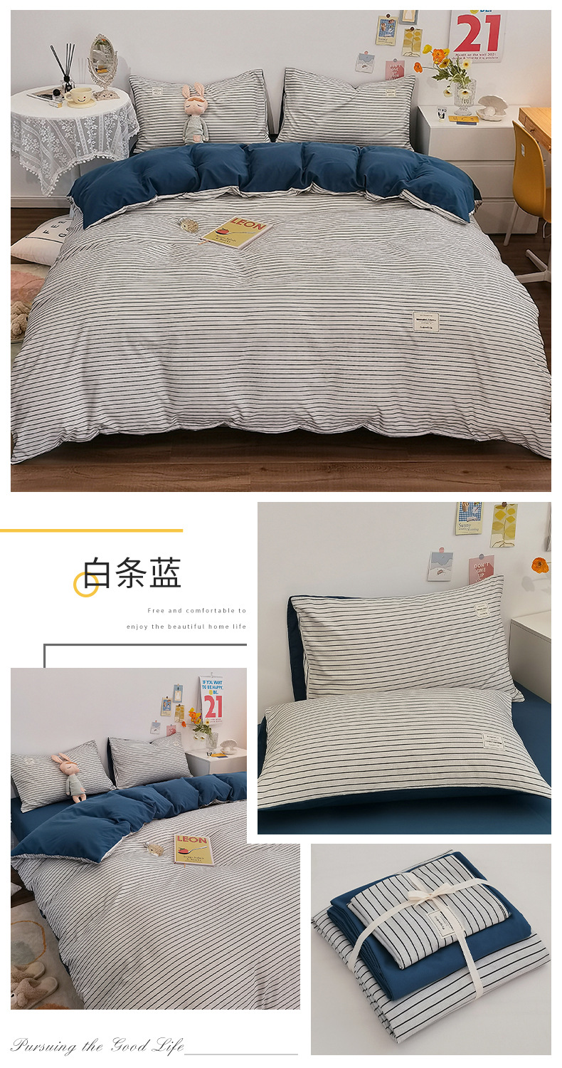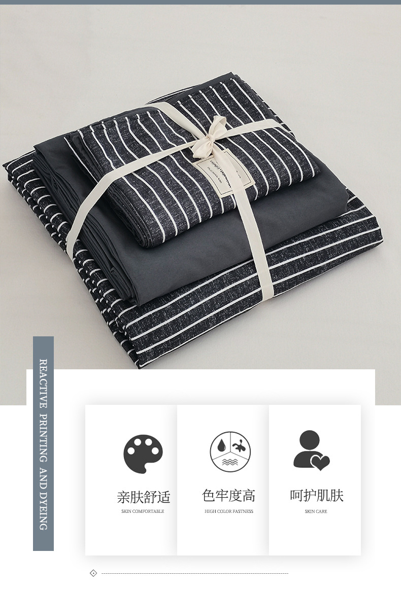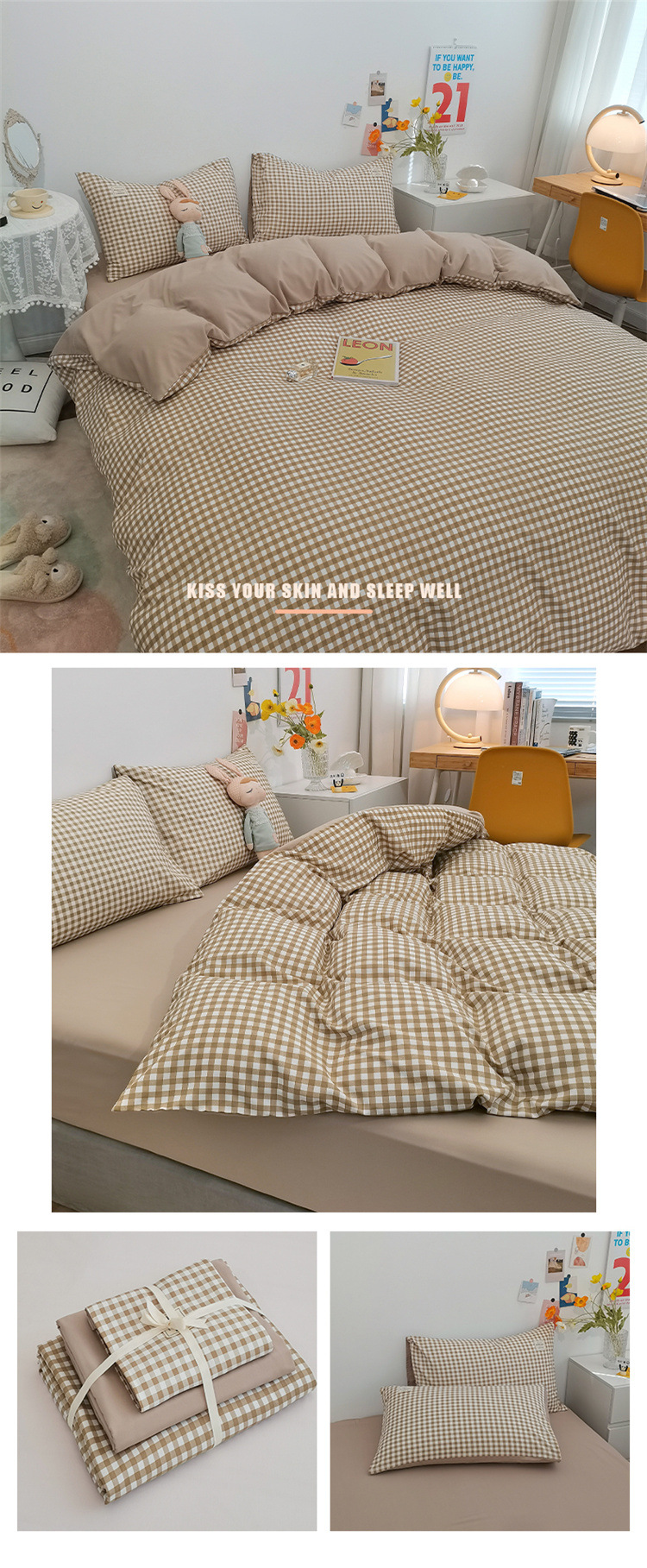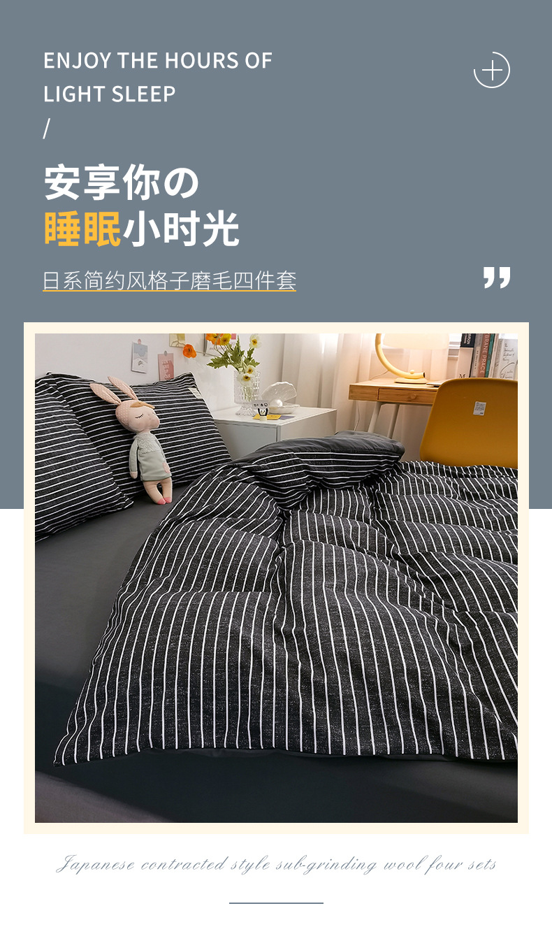 Estilo japonés sin impresión, estilo simple, cuatro piezas, piel molida, dormitorio de celosía, tres piezas, ropa de cama individual y doble al por mayor