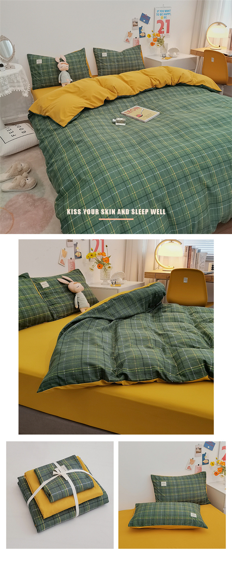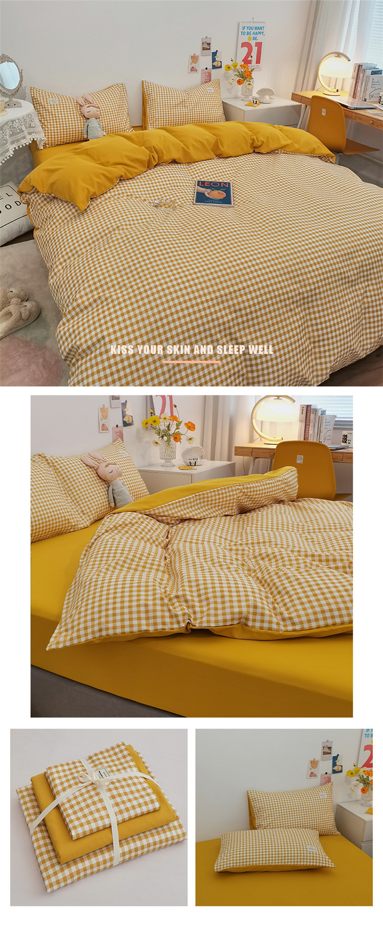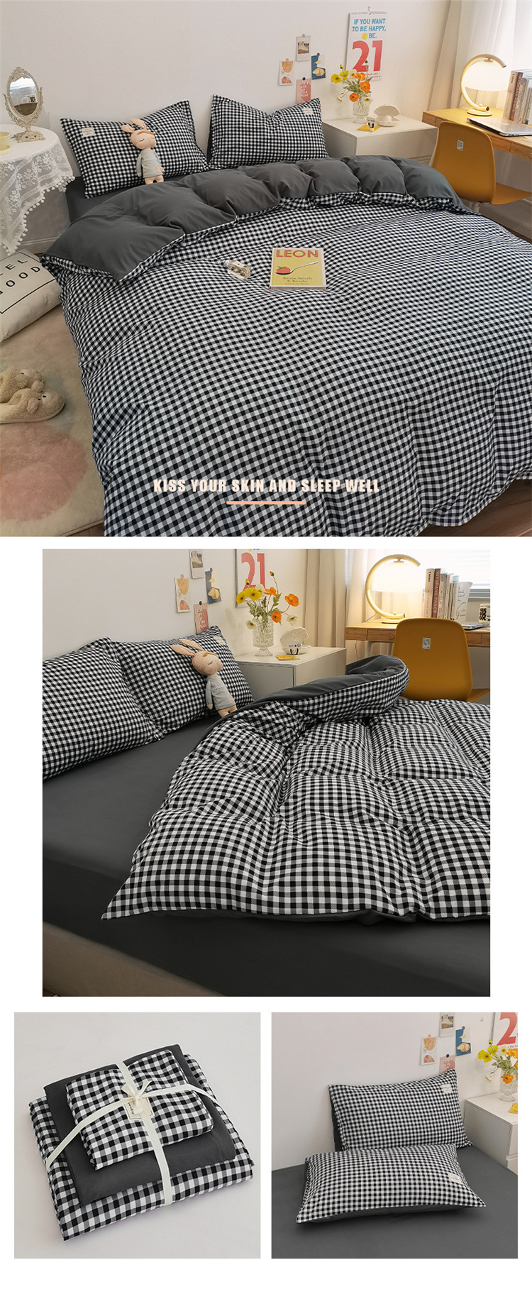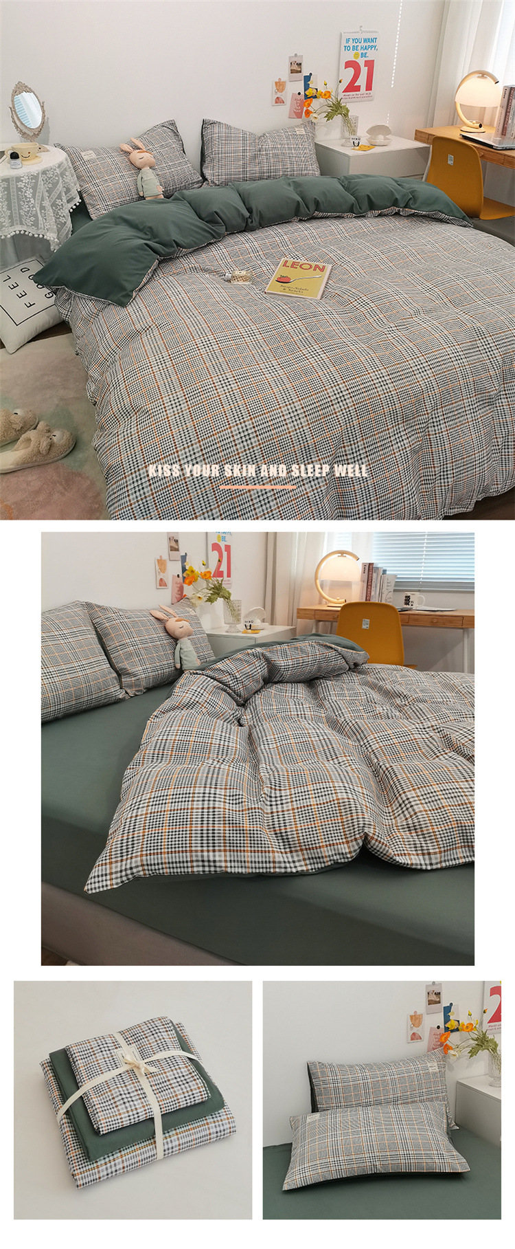 Estilo japonés sin impresión, estilo simple, cuatro piezas, piel molida, dormitorio de celosía, tres piezas, ropa de cama individual y doble al por mayor