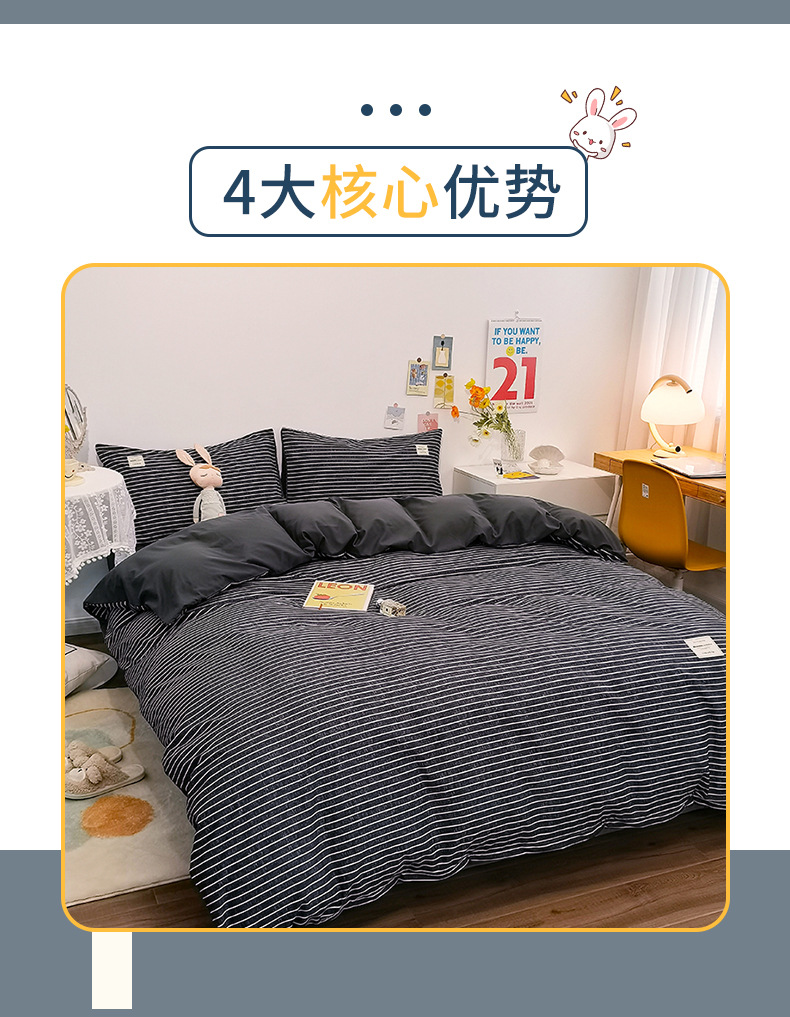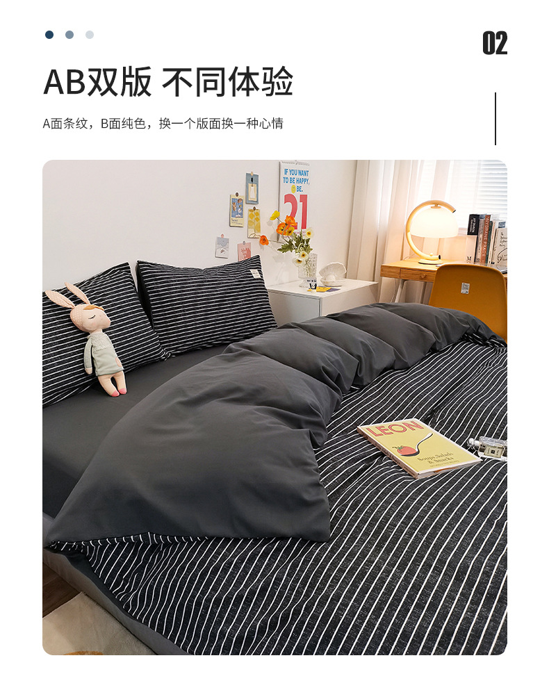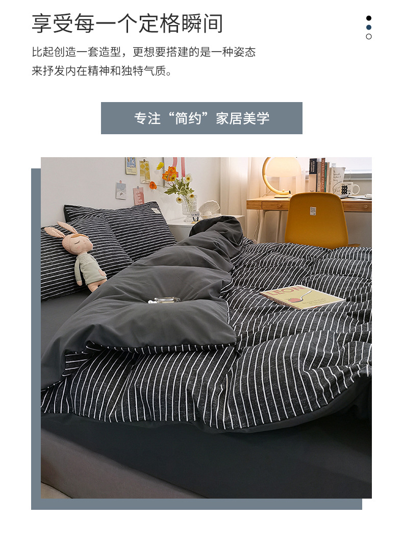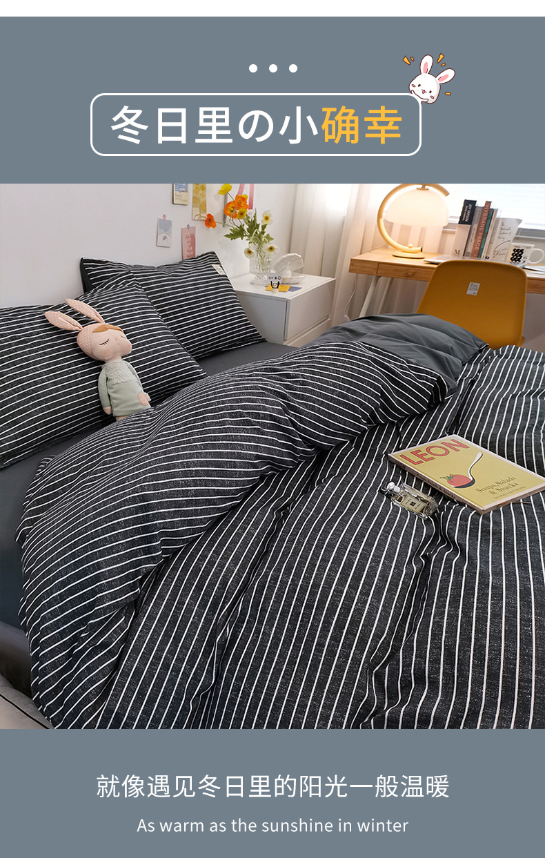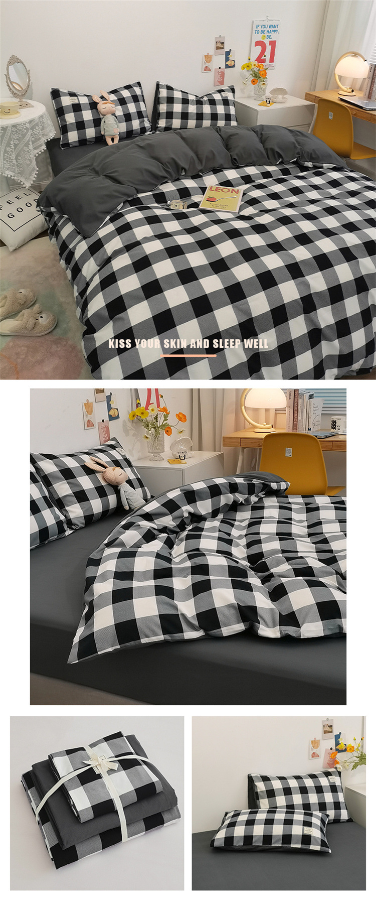 Estilo japonés sin impresión, estilo simple, cuatro piezas, piel molida, dormitorio de celosía, tres piezas, ropa de cama individual y doble al por mayor