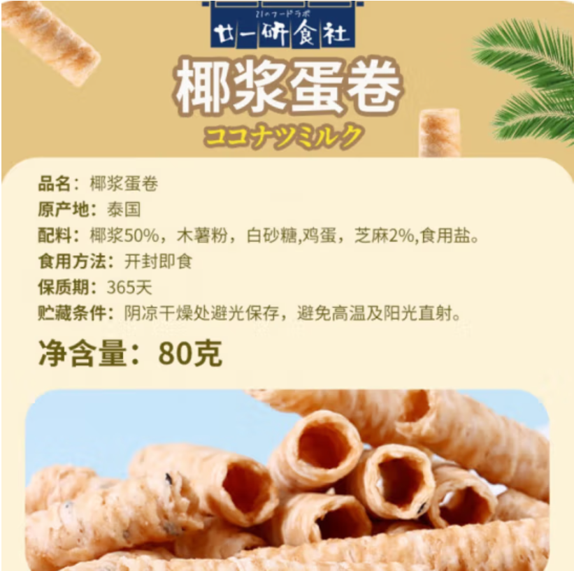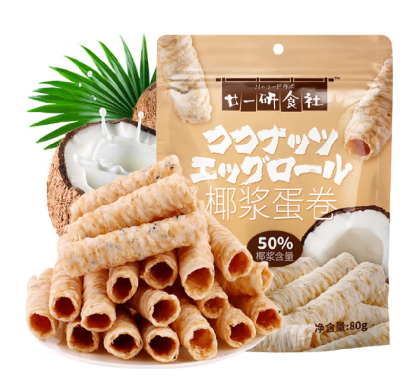 Tailandia importa alimentos de ocio rollo de huevo de pulpa de coco rollo de huevo de coco galletas Red Red Red campus de ocio rollo de huevo de pulpa de coco 80g