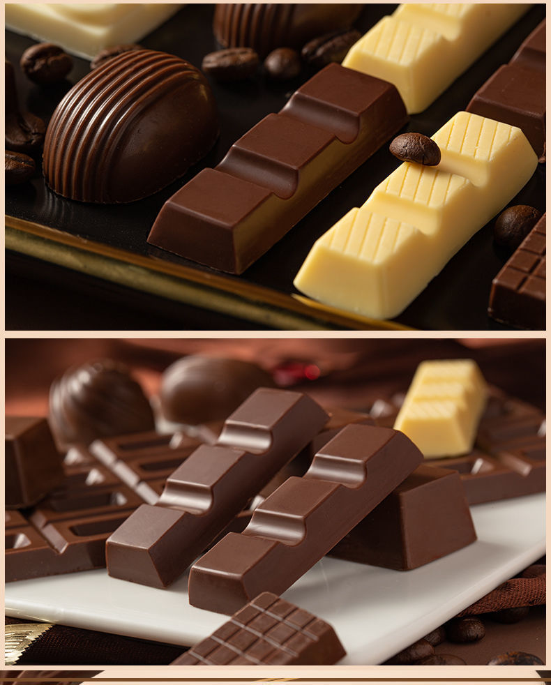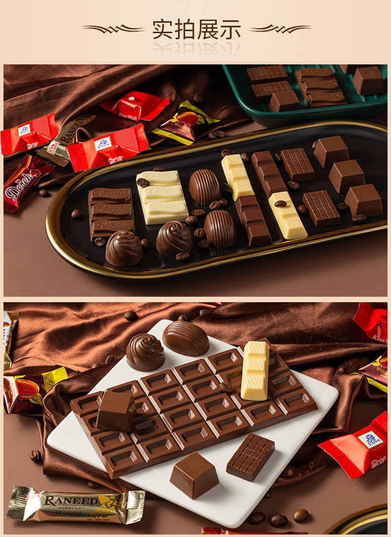 Venta al por mayor de 500g de caramelos de chocolate rojo en línea con múltiples sabores de caramelos de chocolate, bocadillos de chocolate negro de chocolate