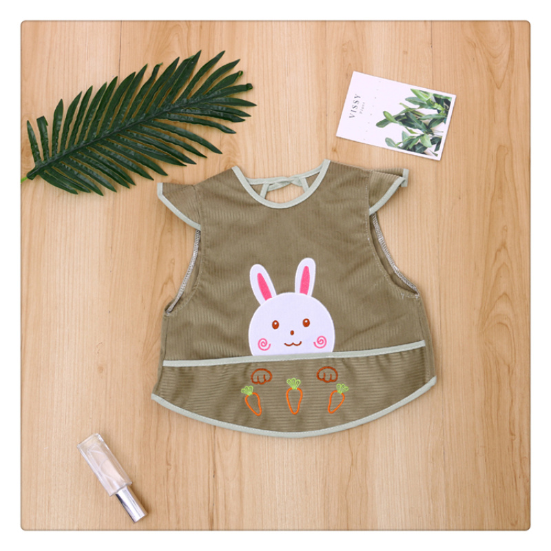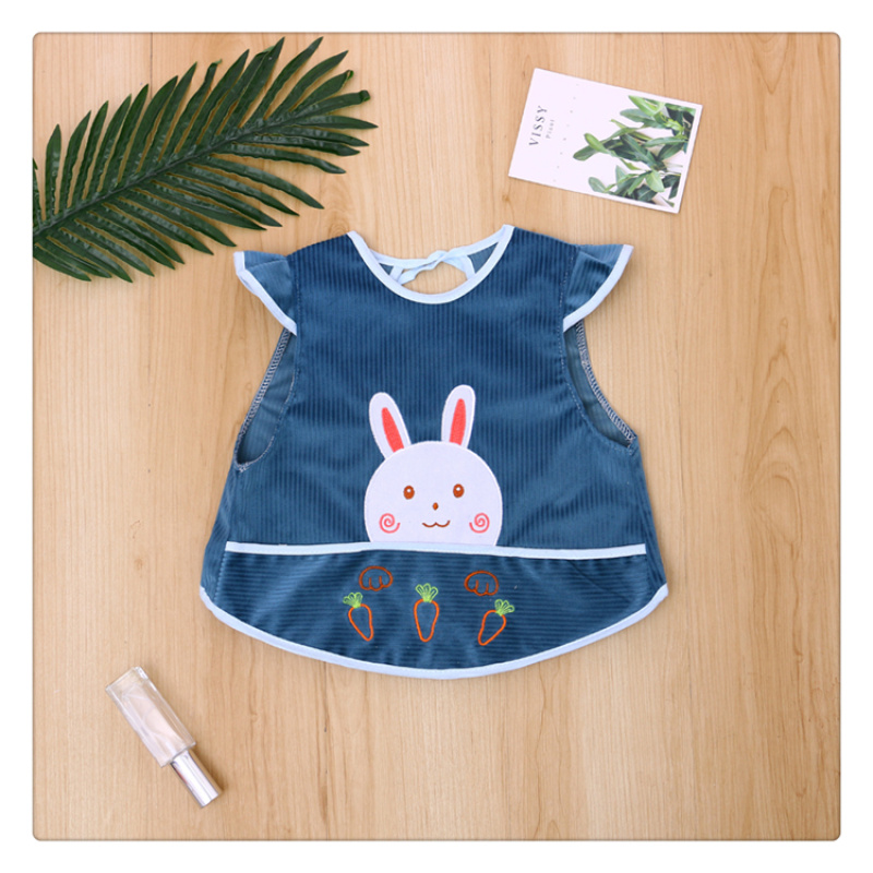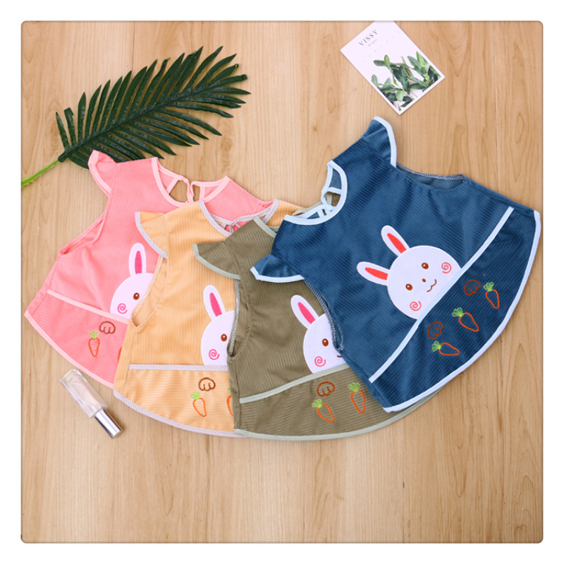 商品名称:多色兔子头像宝宝吃饭罩衣反穿衣 无袖儿童防水围兜纯棉婴儿饭兜