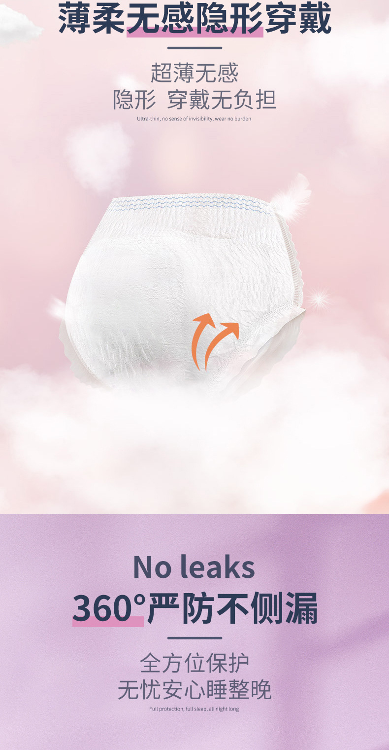 Venta al por mayor de toallas de tía para evitar fugas menstruales laterales durante mucho tiempo por la noche pantalones de tranquilidad menstruales período menstrual ligeros y delgados para dormir pantalones toallas sanitarias