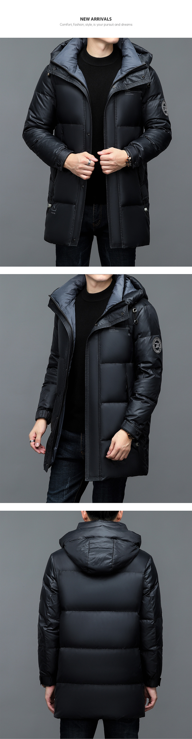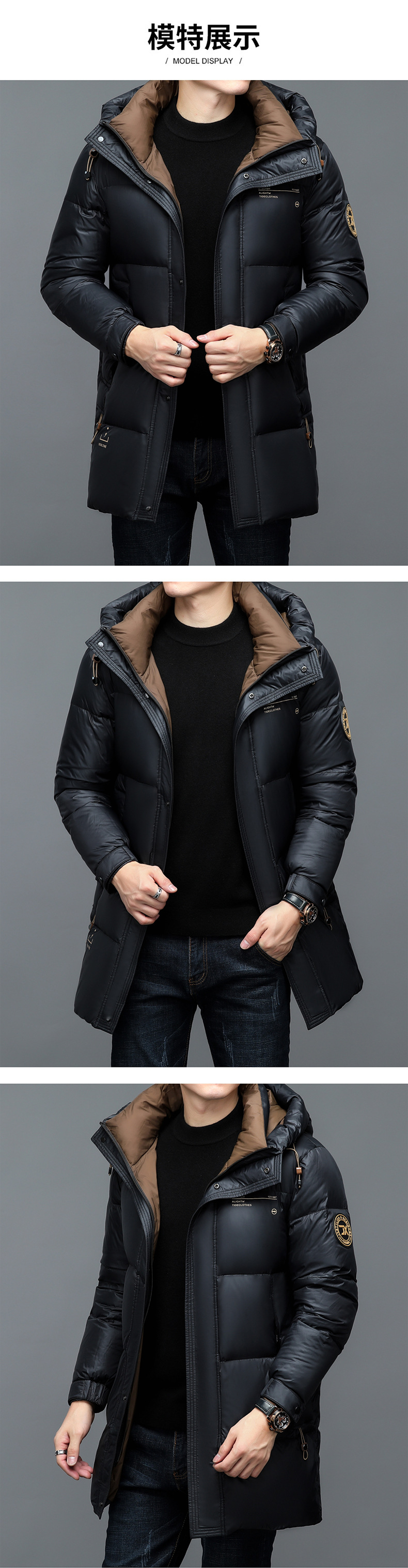 Cross - Border Winter Men medium and long New National Standard 90 White Duck Plum Plum Clothing Warm and Thick Leisure capucha