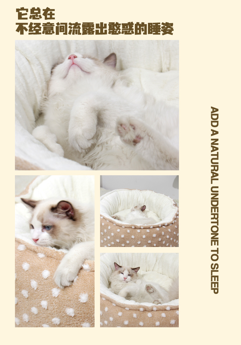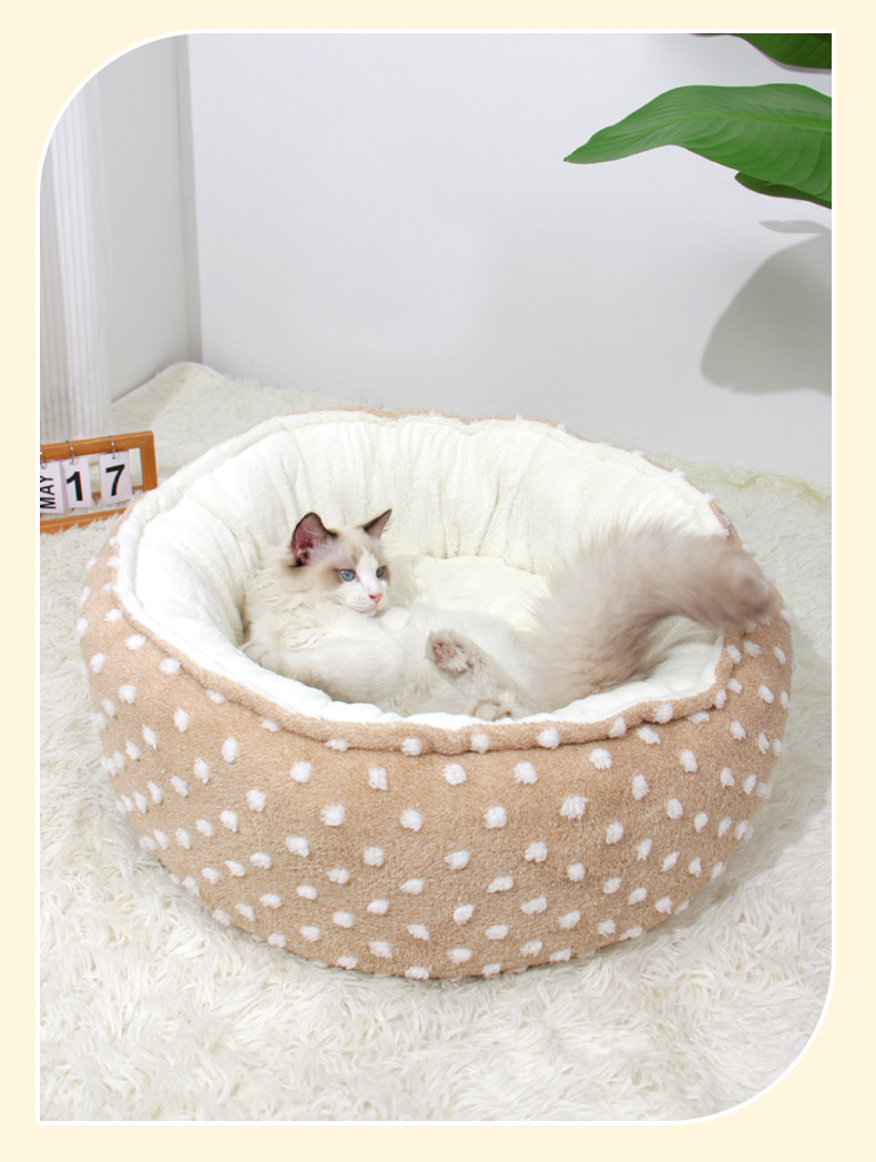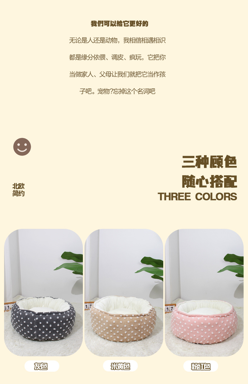 Nuevos nidos de mascotas redondos en invierno con nidos de gatos de Cachemira para mantener calientes las almohadillas abiertas para gatos al por mayor de nidos de perros en stock transfronterizos