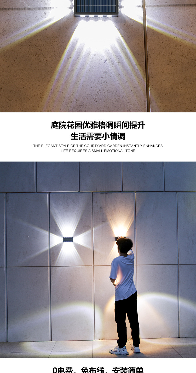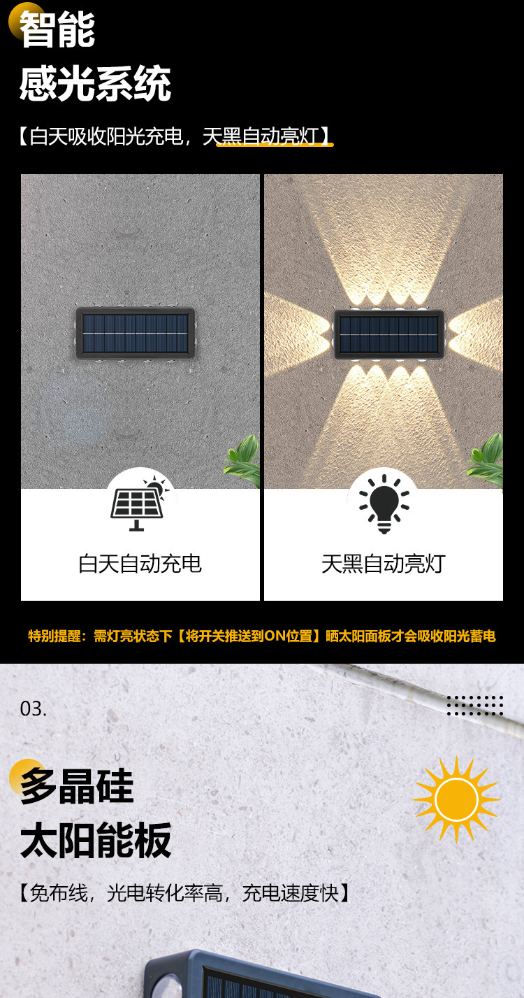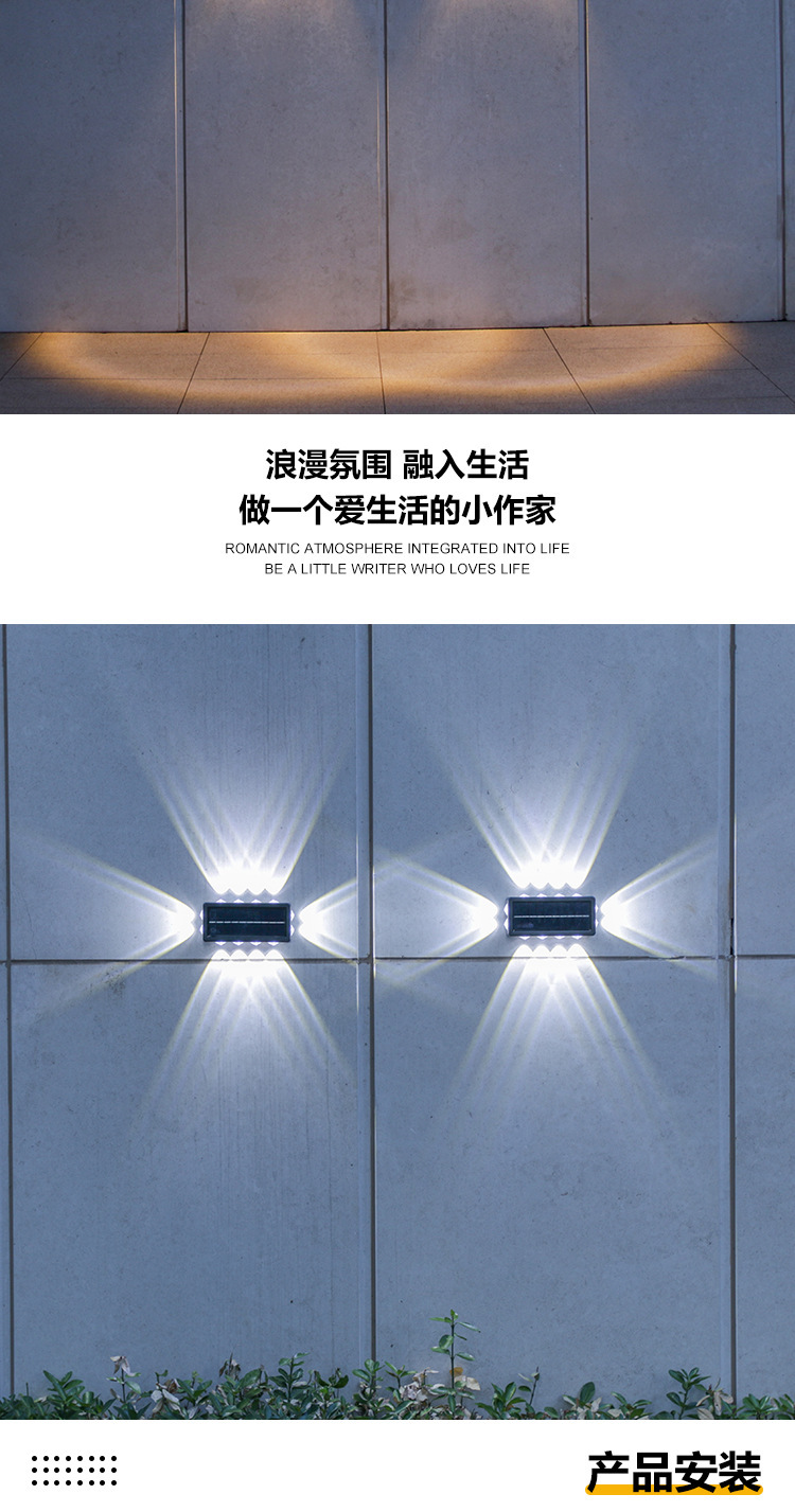 Luz solar de lavado de paredes al aire libre pared impermeable carretera luz de pared patio jardín decoración Villa LED iluminación
