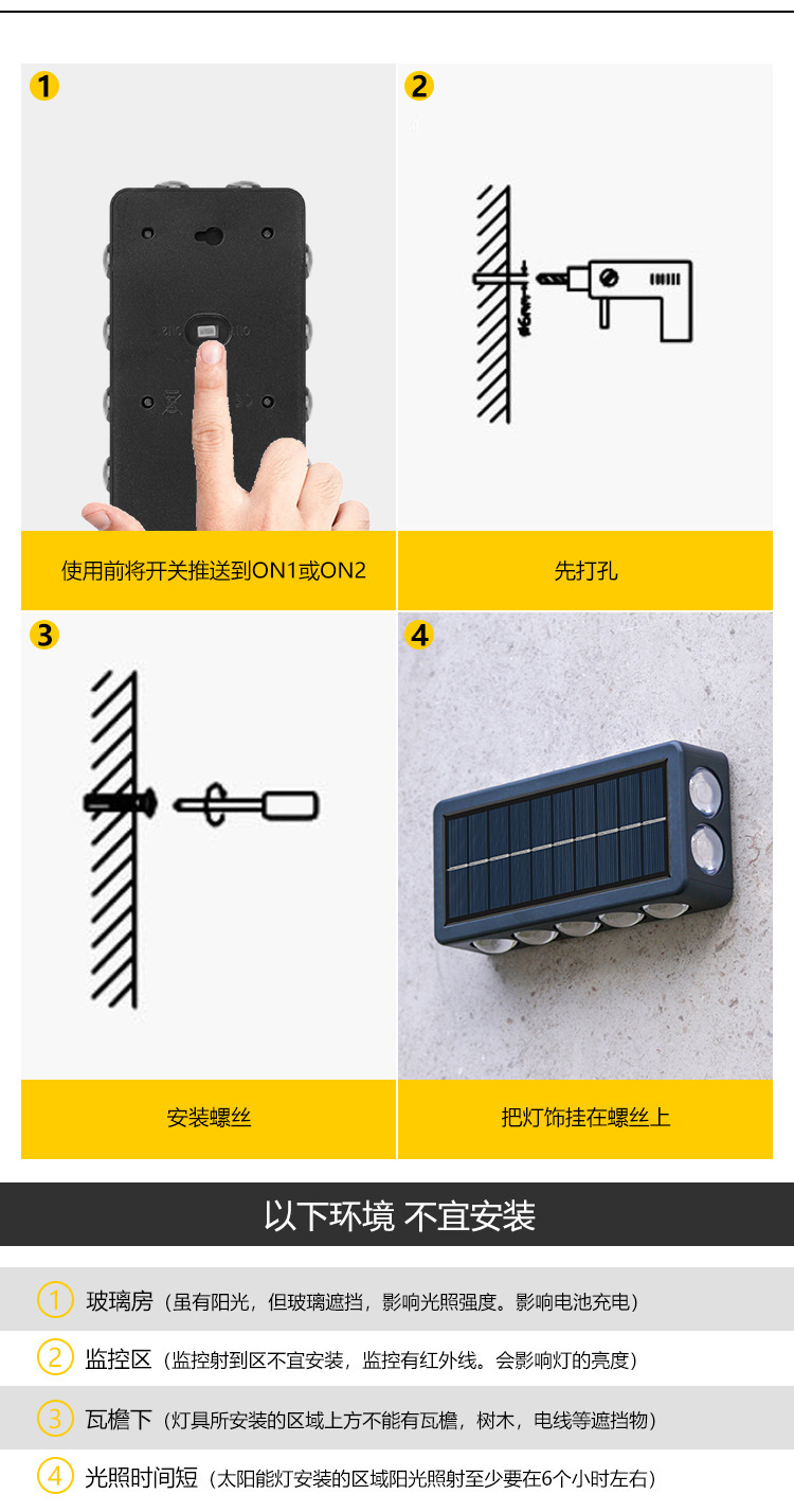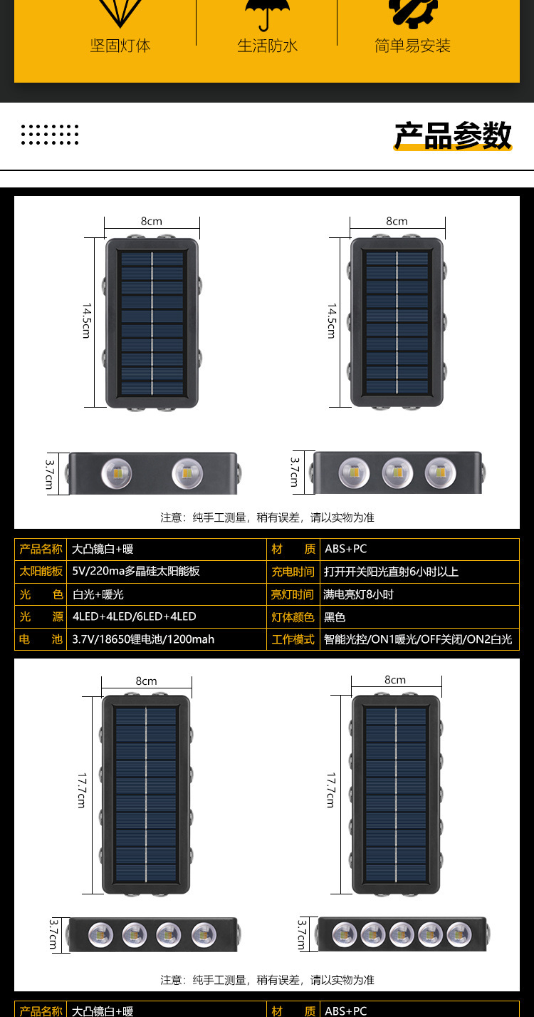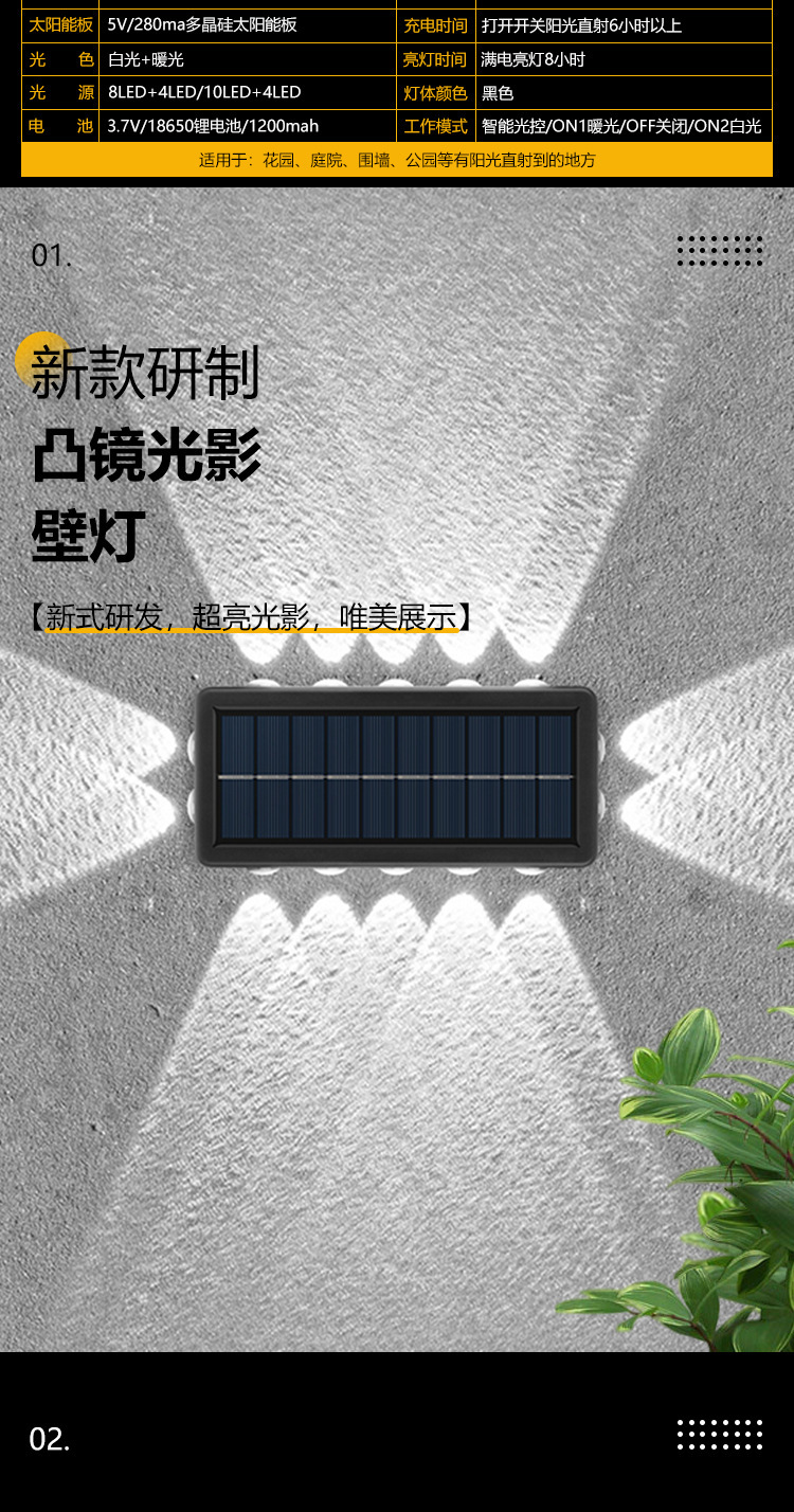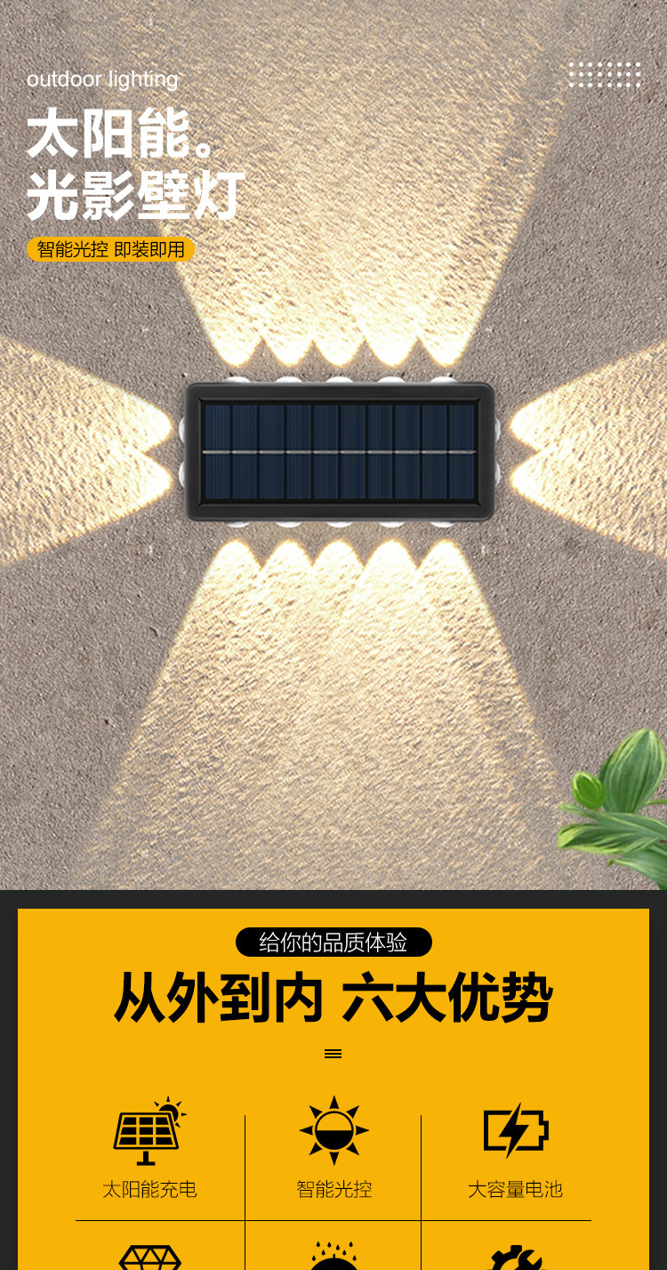 Luz solar de lavado de paredes al aire libre pared impermeable carretera luz de pared patio jardín decoración Villa LED iluminación