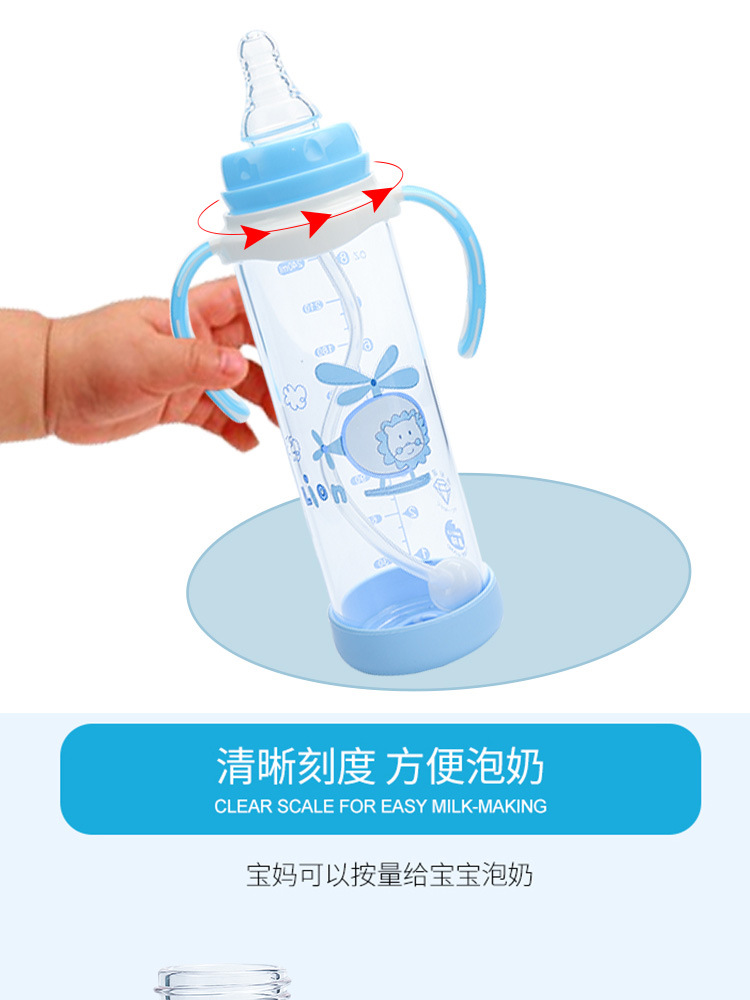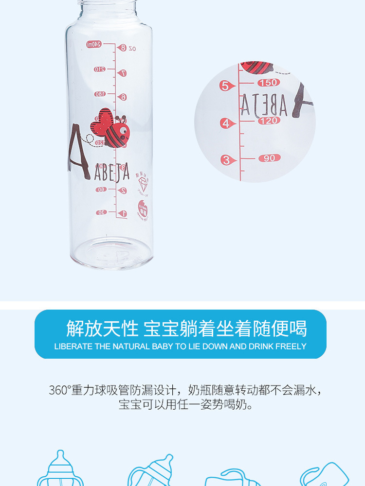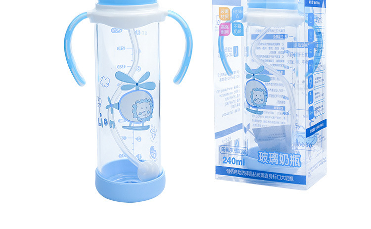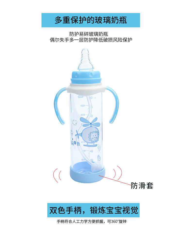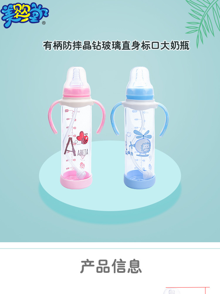 Biberón de vidrio recto para bebés con mango 240ml biberón de gran calibre estándar fabricante mayorista de flatulencia neonatal