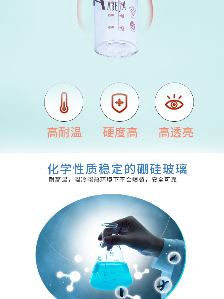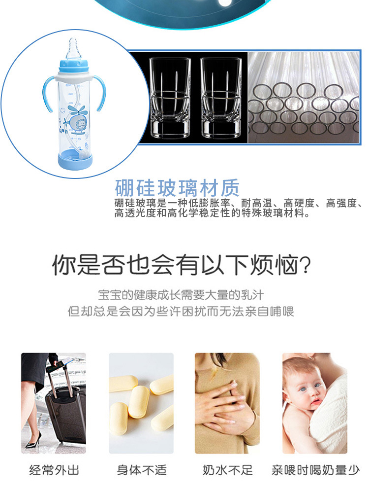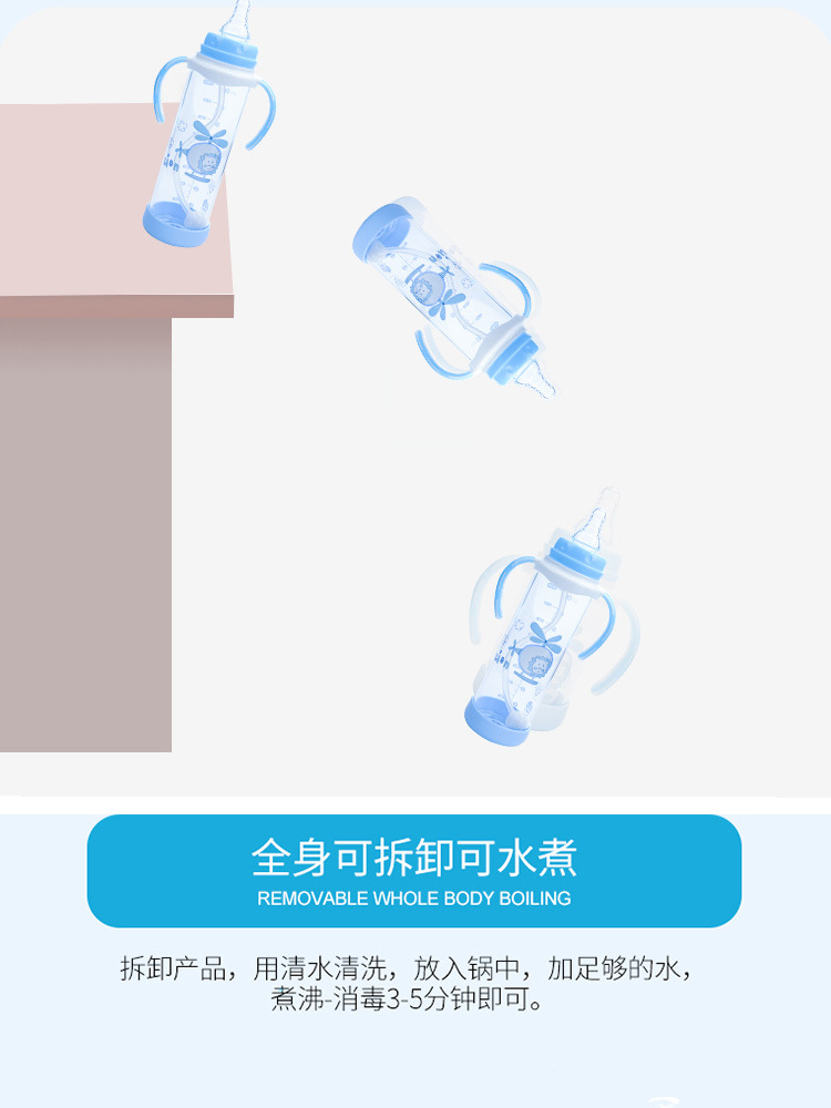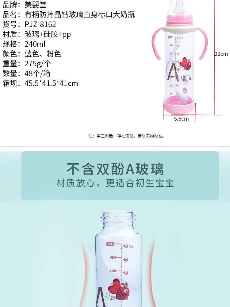 Biberón de vidrio recto para bebés con mango 240ml biberón de gran calibre estándar fabricante mayorista de flatulencia neonatal