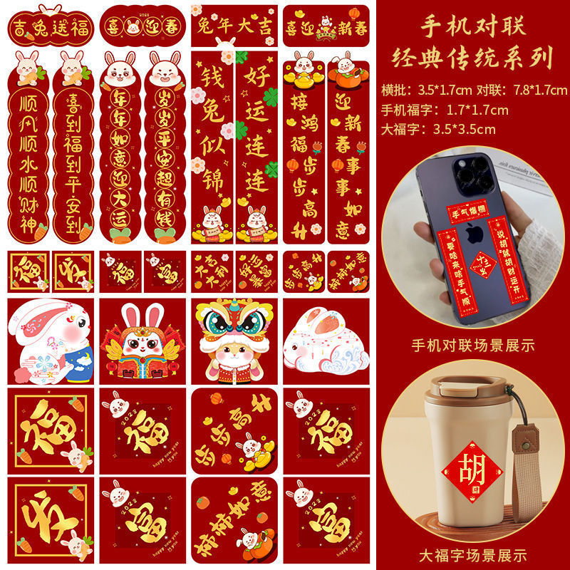 2023 nuevo mini teléfono móvil del año del conejo, coplas pequeñas, dibujos animados lindos, creatividad, Festival de primavera, coplas pequeñas, pegatinas decorativas del Festival de primavera