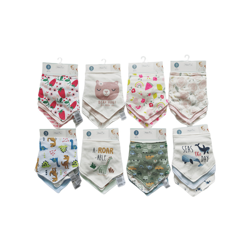Dibujos animados para bebés y niños pequeños, toallas triangulares, toallas de saliva, baberos, baberos, tesoros de algodón para hombres y mujeres, 3 artículos colgantes