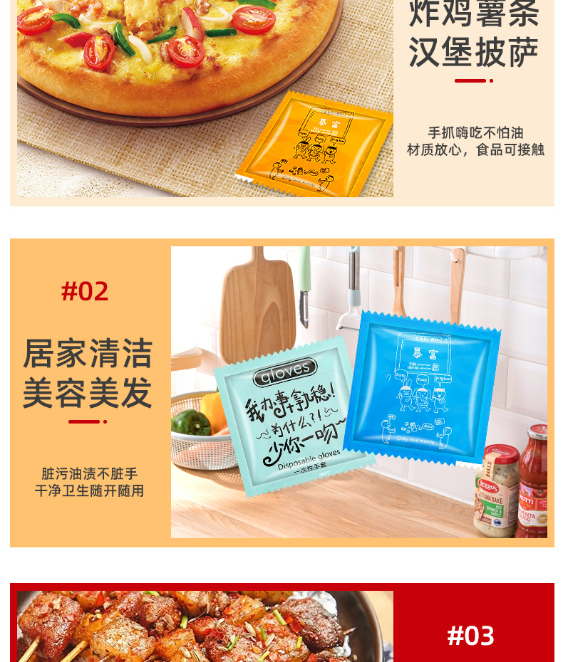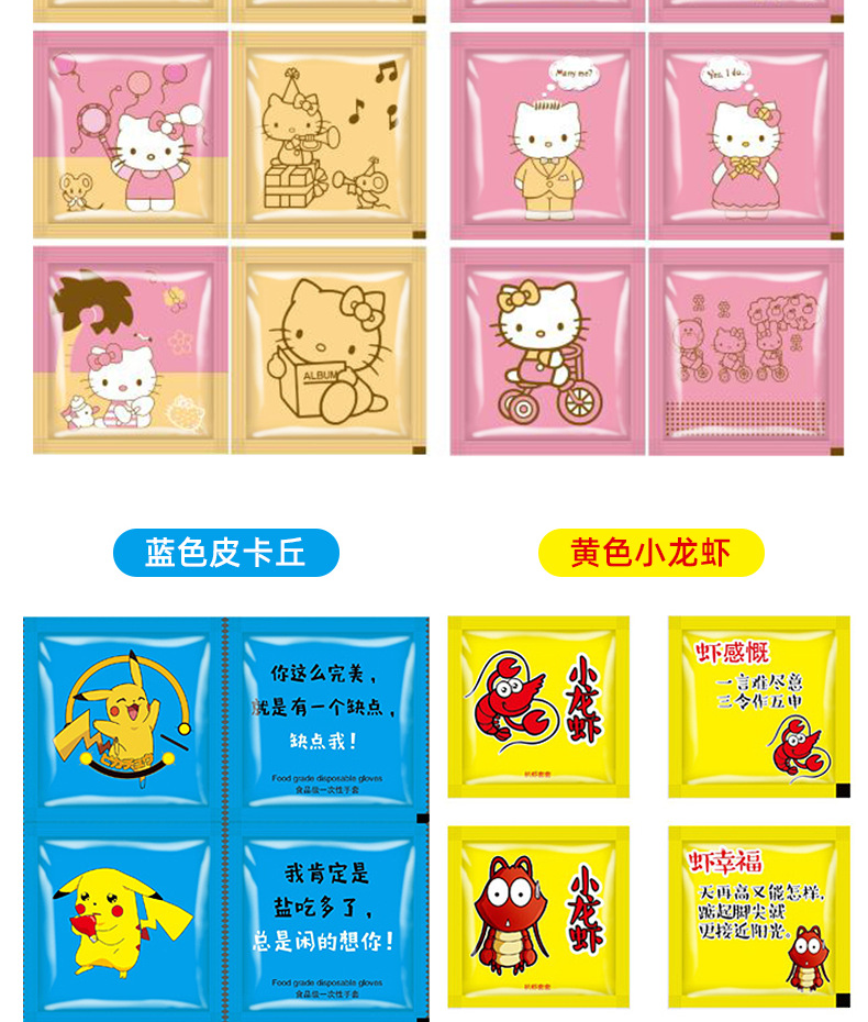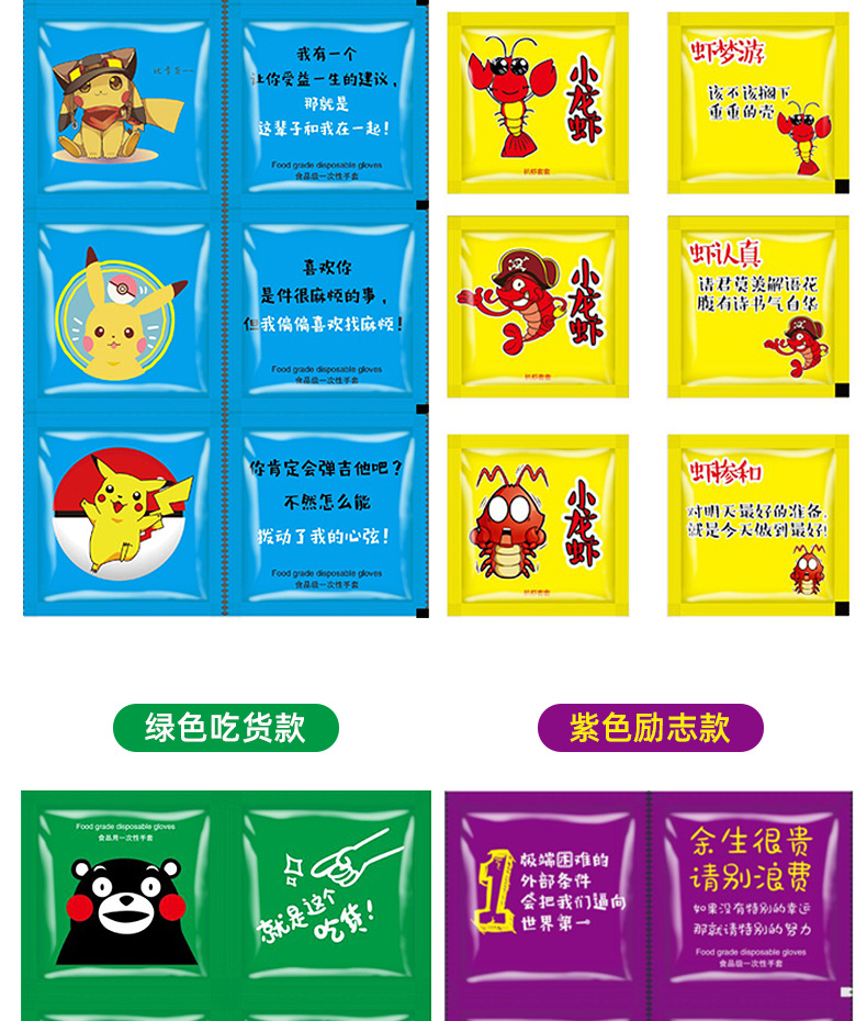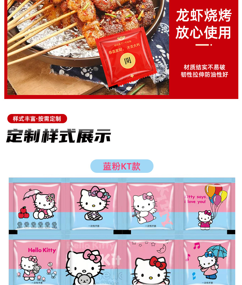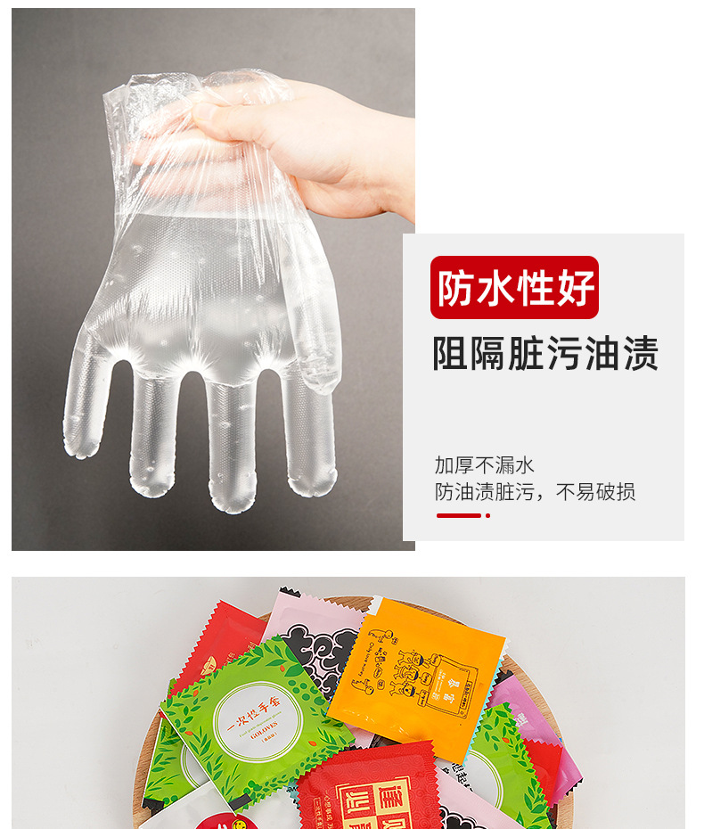 Guantes desechables comerciales empaquetados de forma independiente pequeños envases de comida de grado alimenticio, comida de cocina para llevar, langosta asada, comida PE