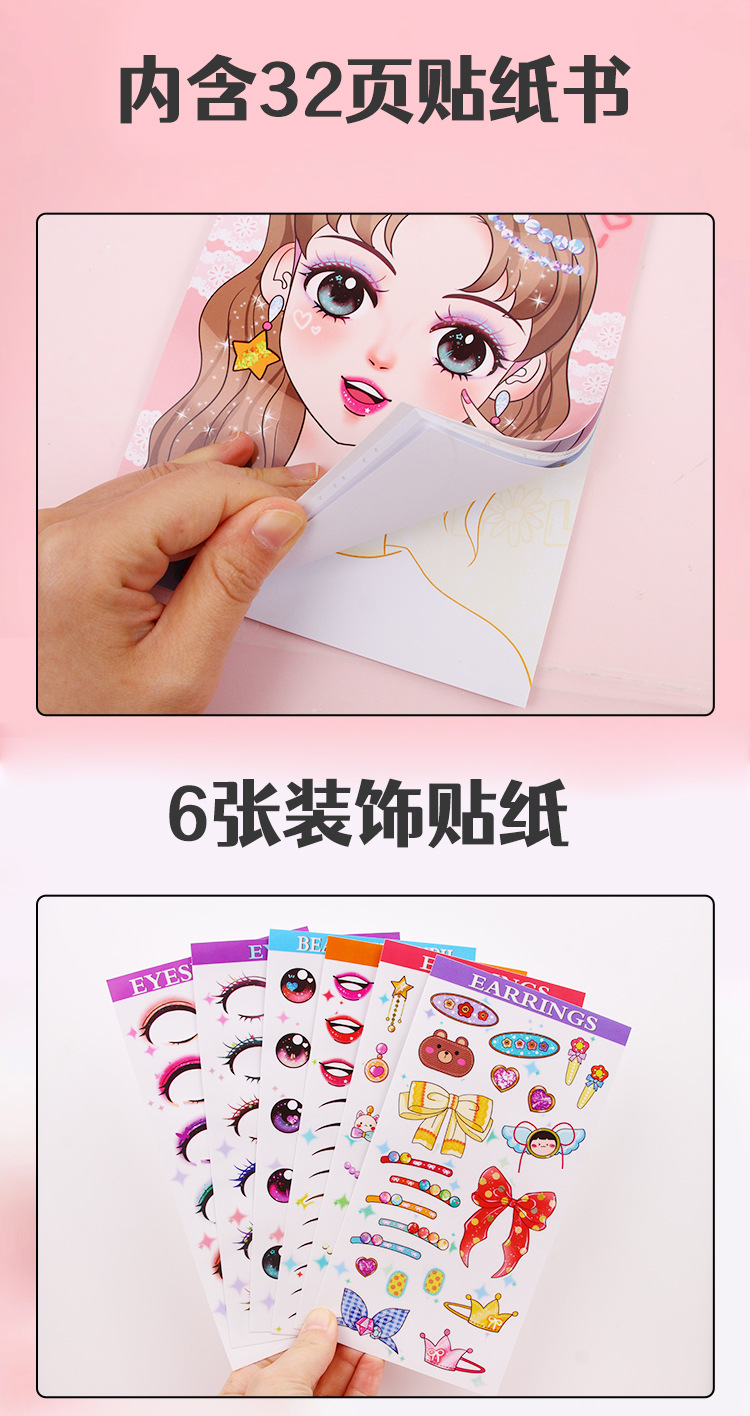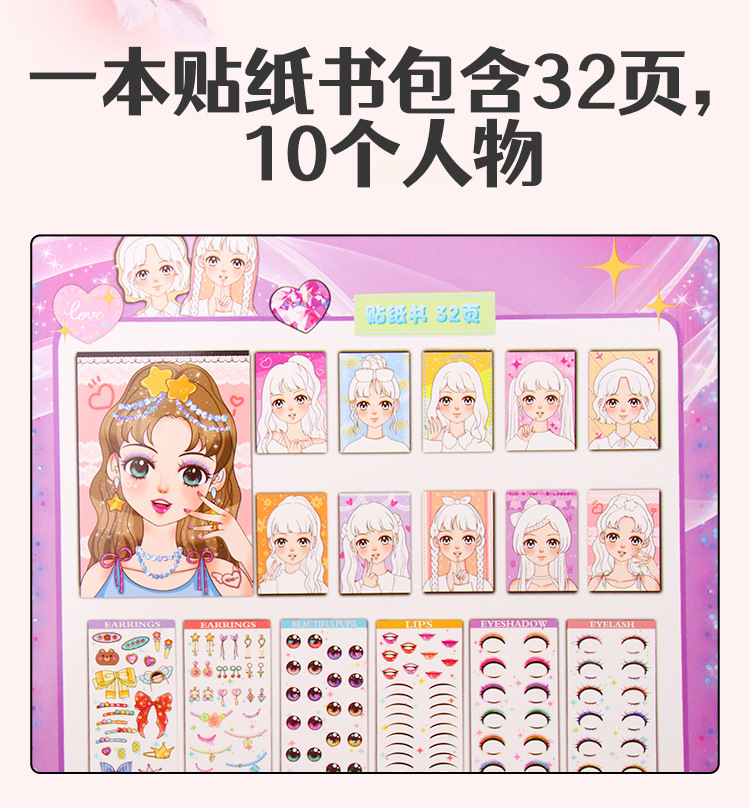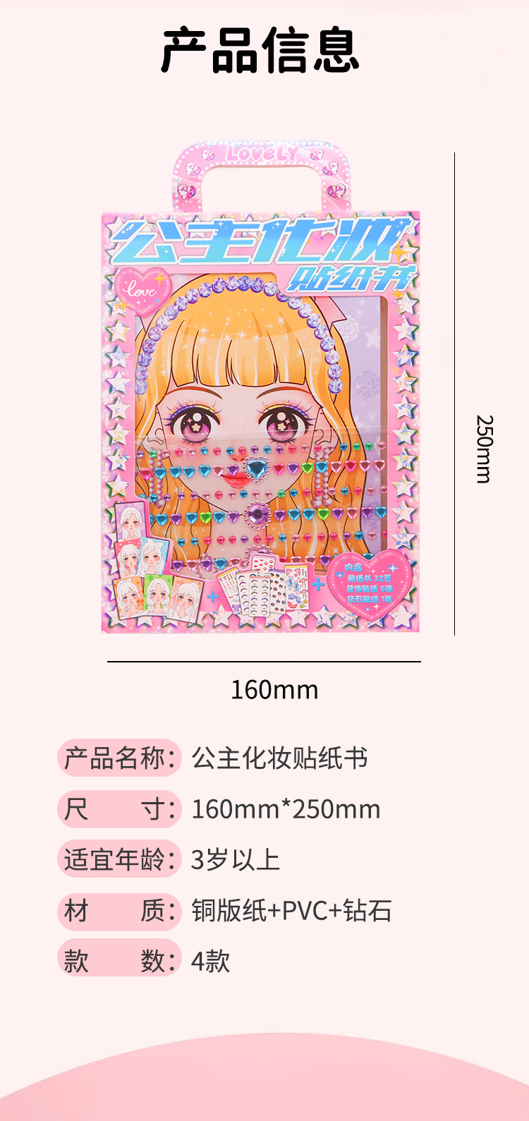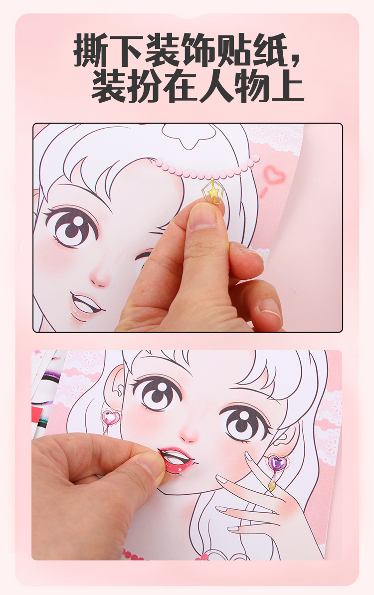 Princess maquillation stickers Book Girls Wear Character stickers Crystal Diamond GEM Decoration stickers Book Children 's Toys