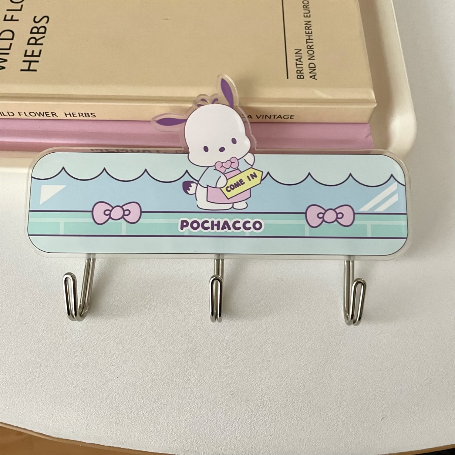 Gancho en la puerta, perro Sanrio pacha, gancho en el baño, lindo, gancho sin rastro, acrílico, sin perforación