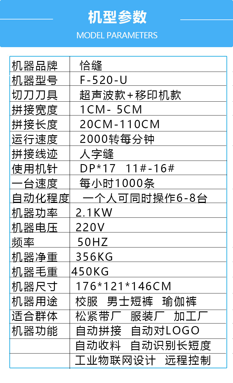 Máquina de coser inteligente, máquina de coser automática de Unión elástica, modelo ultrasónico, tamaño F - 520 - u de impresión automática
