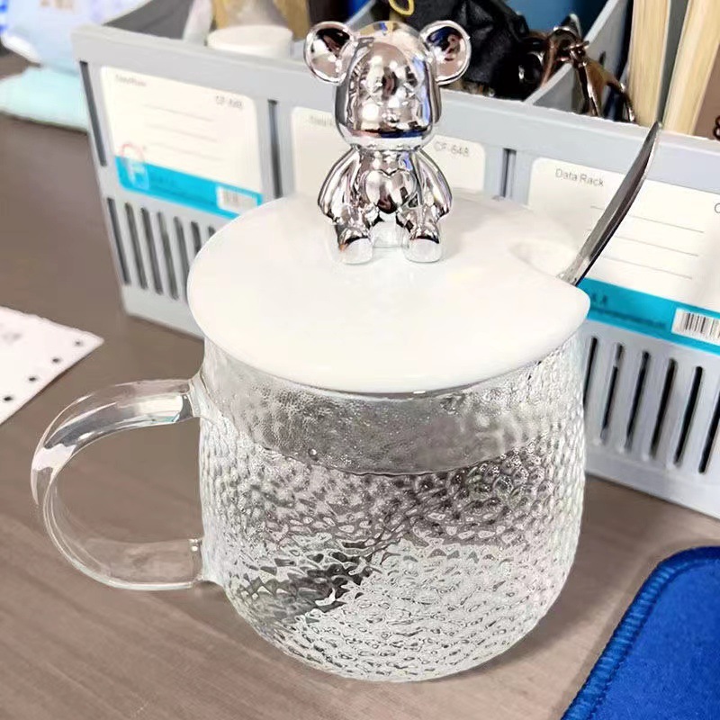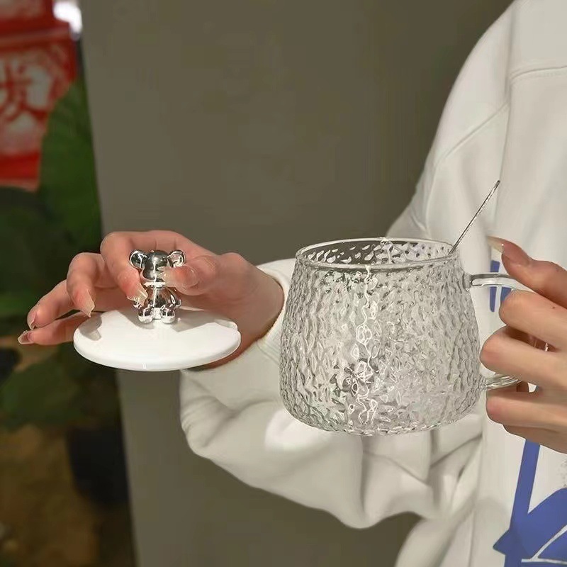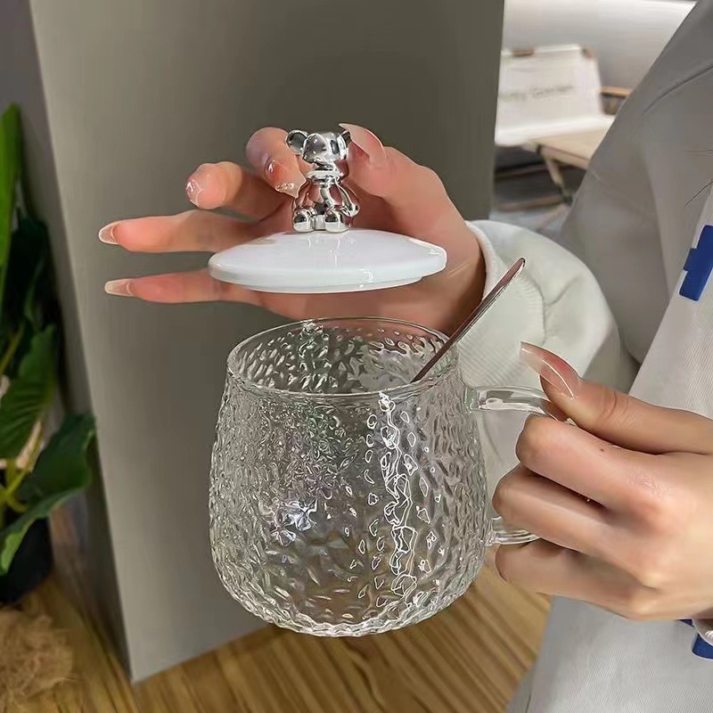 Taza de oso, taza de Mack de alto valor facial con tapa, taza de agua de regalo ins, taza de café de verano de gran capacidad, vaso